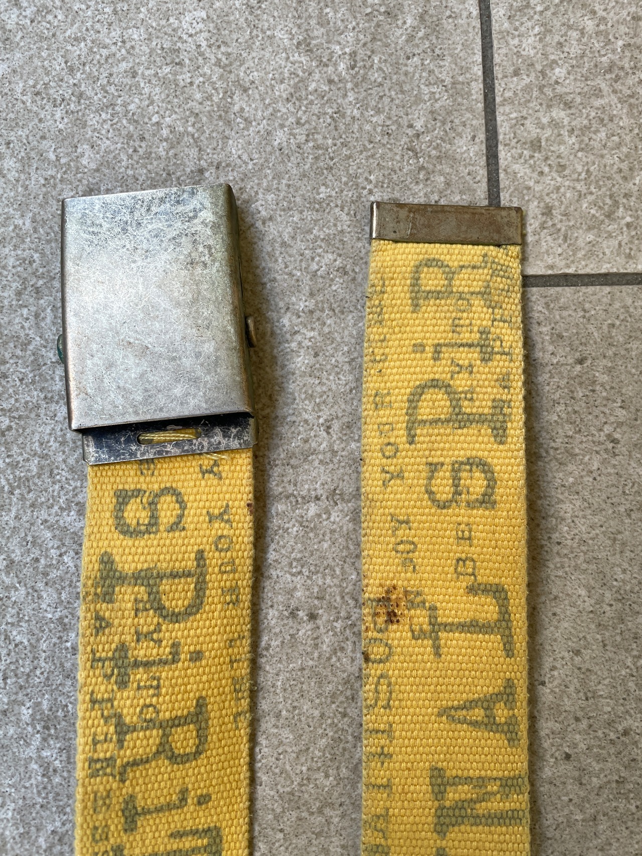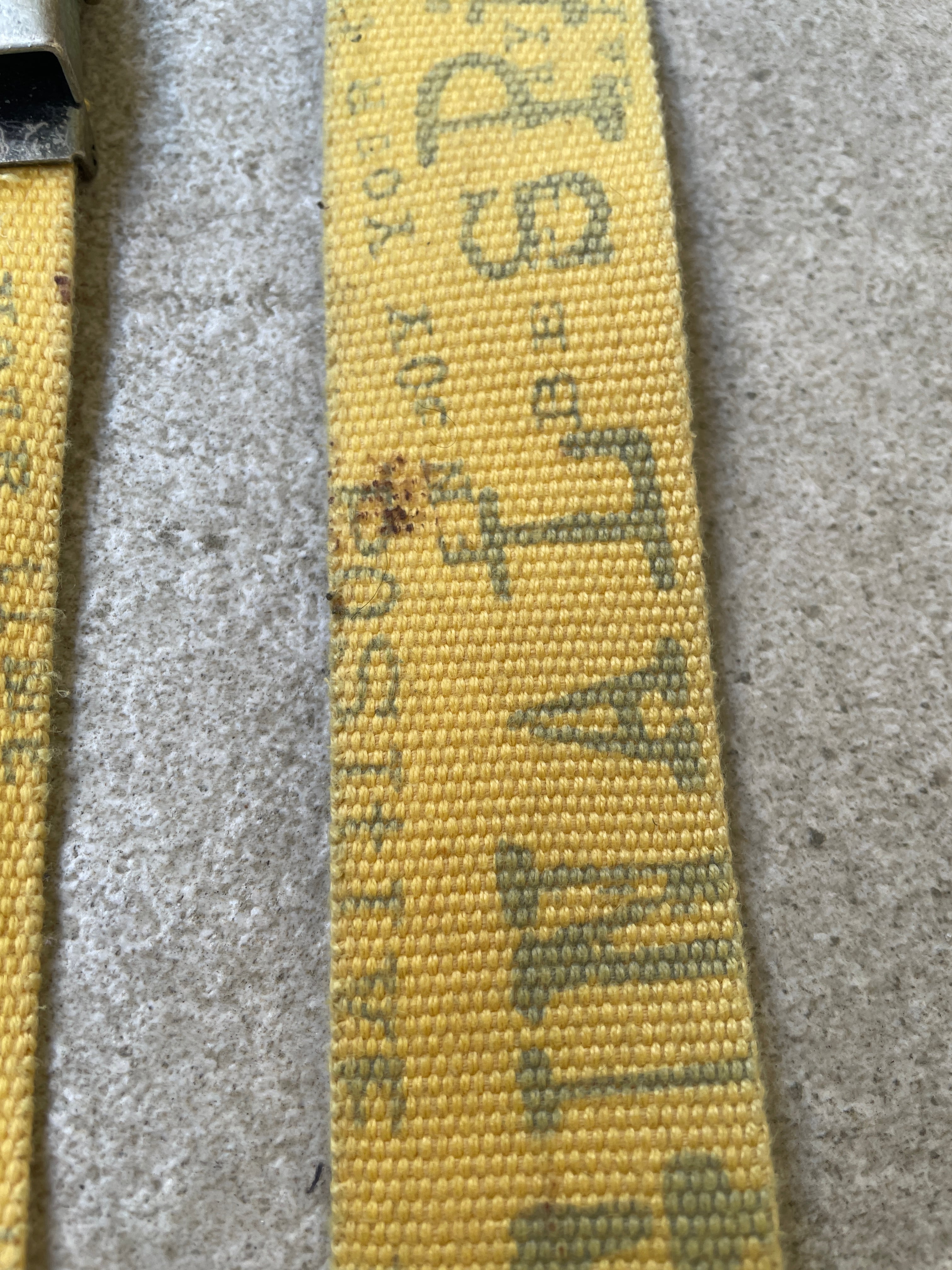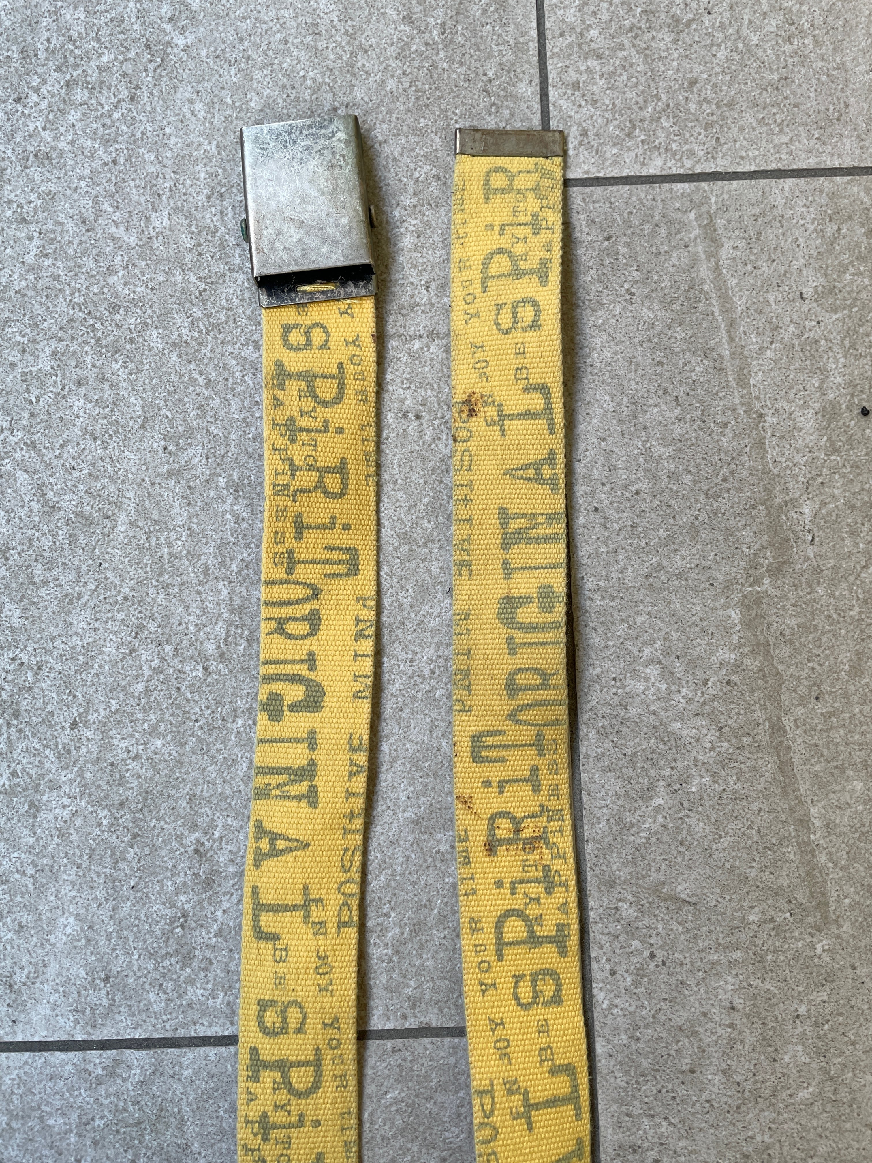 イエローカラーに、”SPIRIT"や”ORIGINAL"といったテキストが施された、ガチャベルト。Y2Kな雰囲気が感じられる一本。ファッションの良い差し色になってくれそうです。アジャストしやすいのがガチャベルの魅力でもあります。