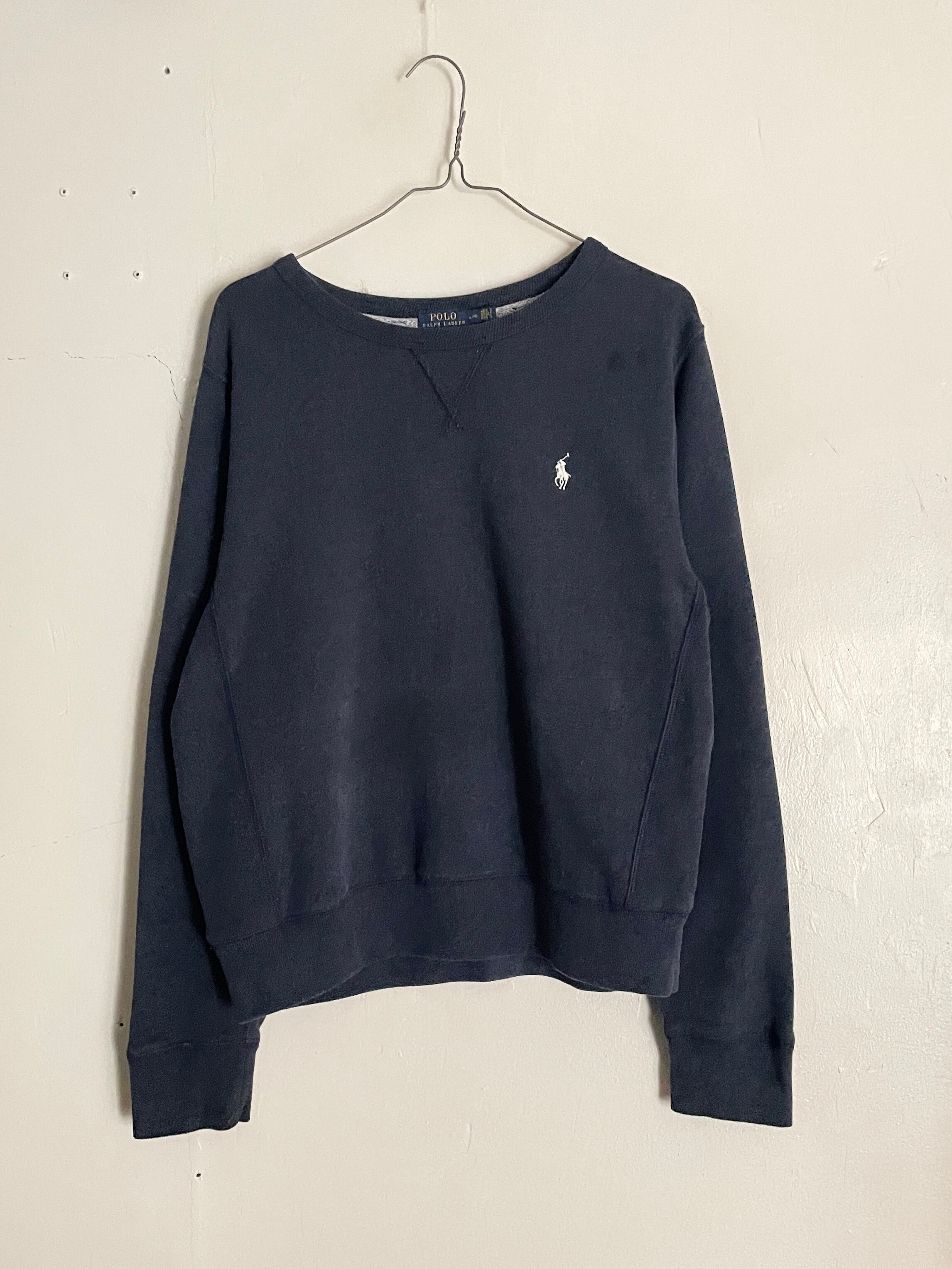 ネイビーボディに、ワンポイントでポニーロゴが施された、ラルフローレンのスウェット。主張の激しくない、シンプルなデザインです。柔らかいコットンポリのタイトめなサイズ感。一枚ではもちろんですが、インナーとしても活躍してくれるアイテムです。