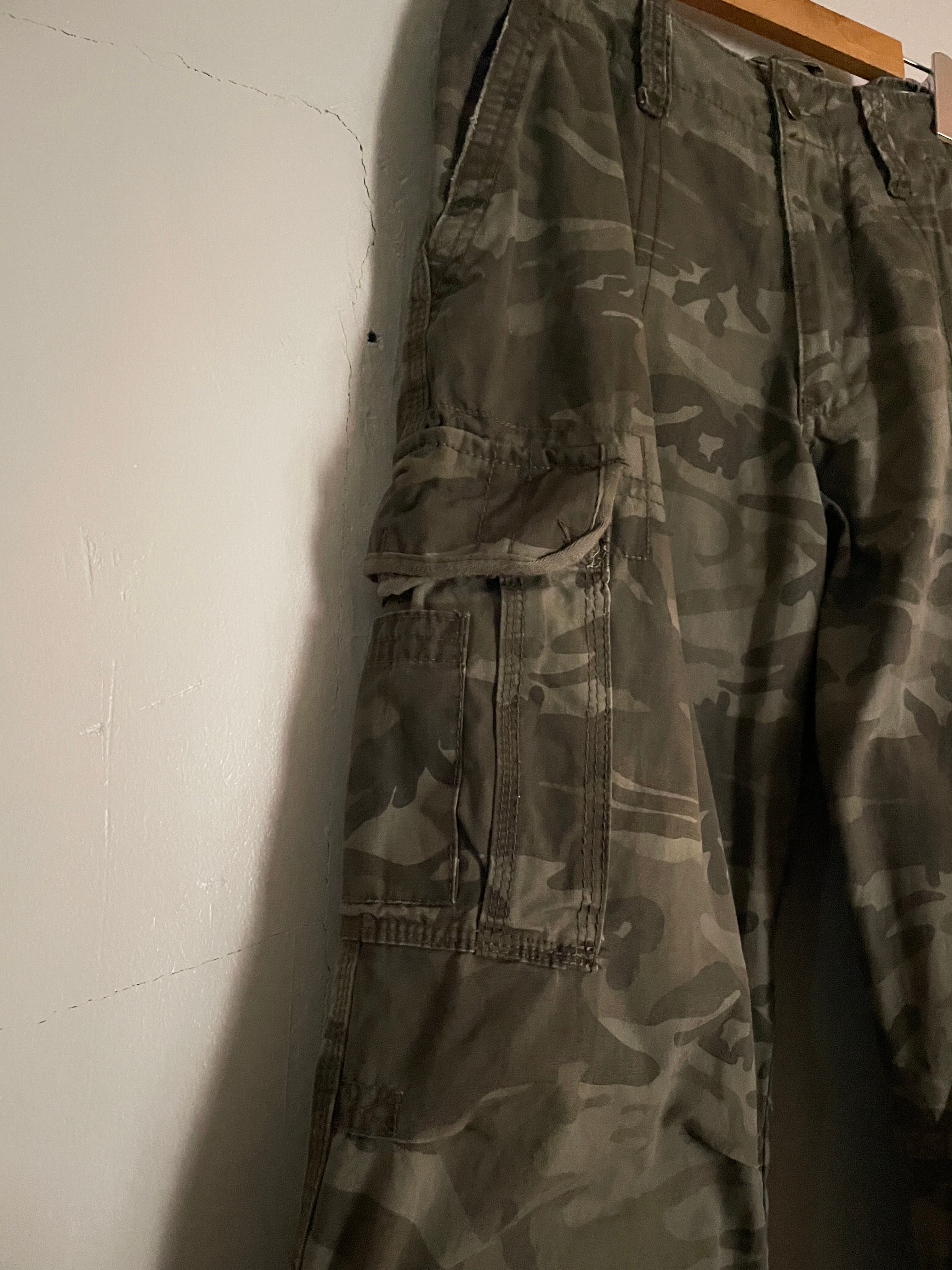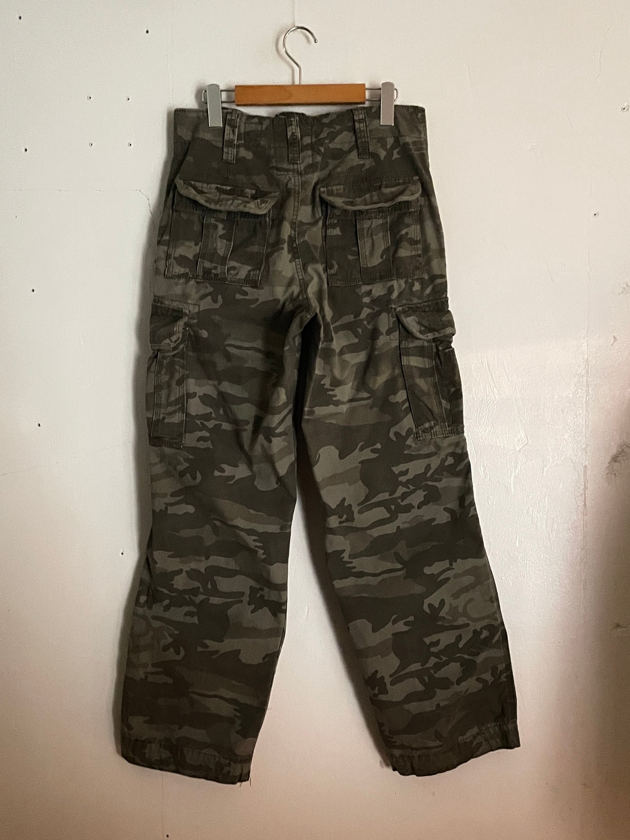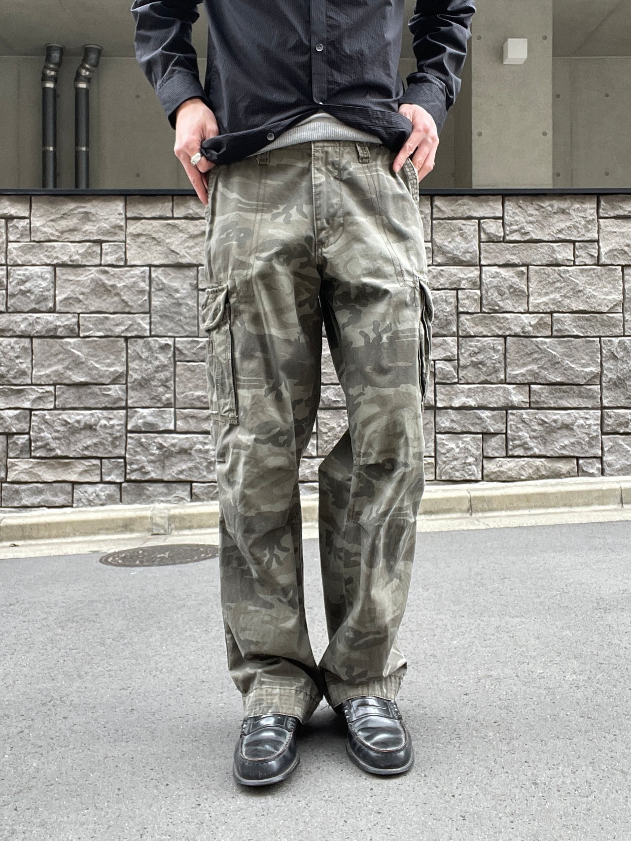 フェード味のある迷彩柄で、豊富なポケッとが魅力的な、カーゴパンツ。鞄なんていらないくらいのポケットの量。機能性抜群です。ガツンとした太さのあるワイドシルエット。Y2Kな雰囲気も感じられます。軽めなコットン素材なので、履き心地も◎。シンプルになりがちな春は、こういったデザインの効いたパンツは確実に活躍してくれます。