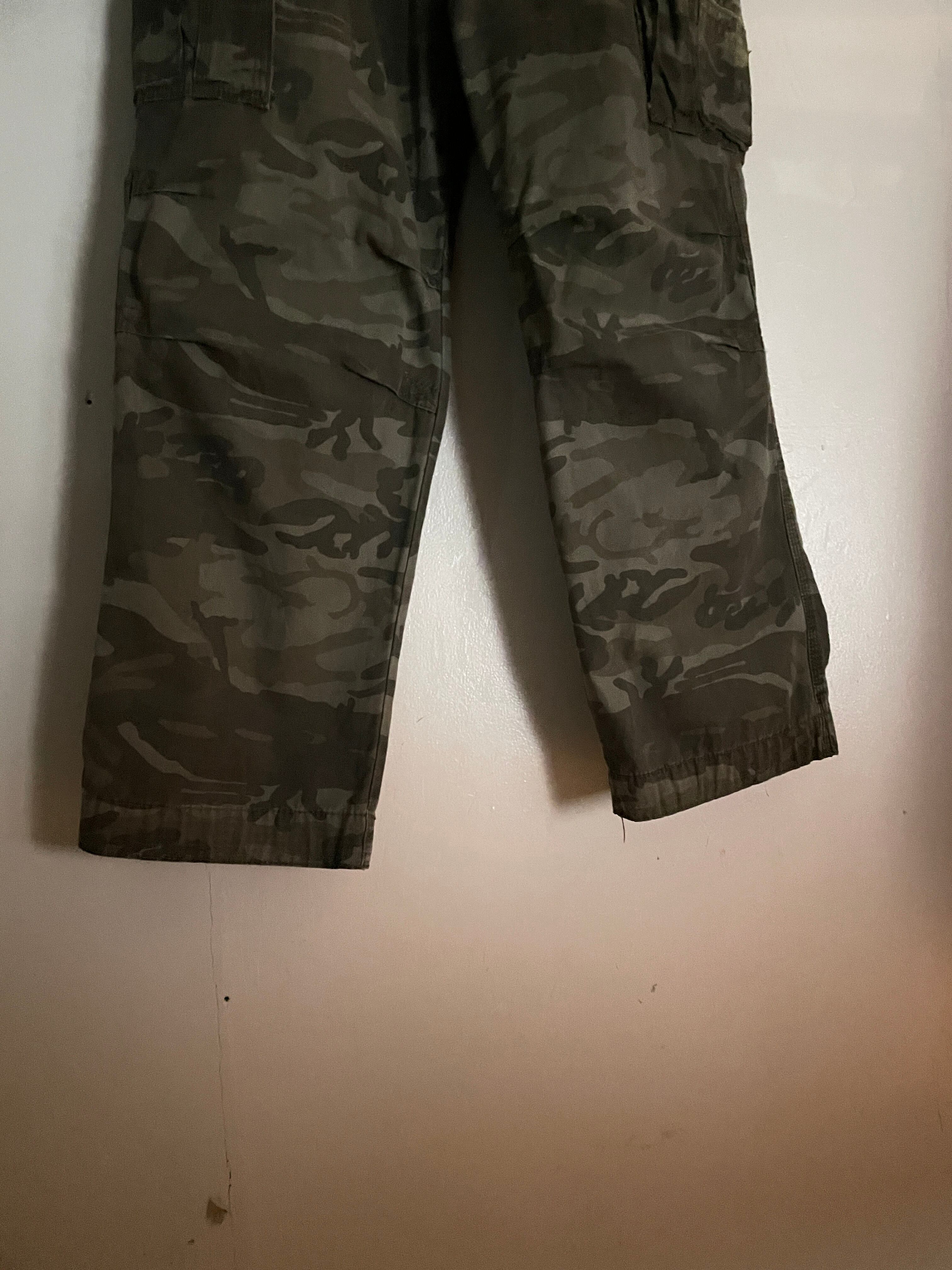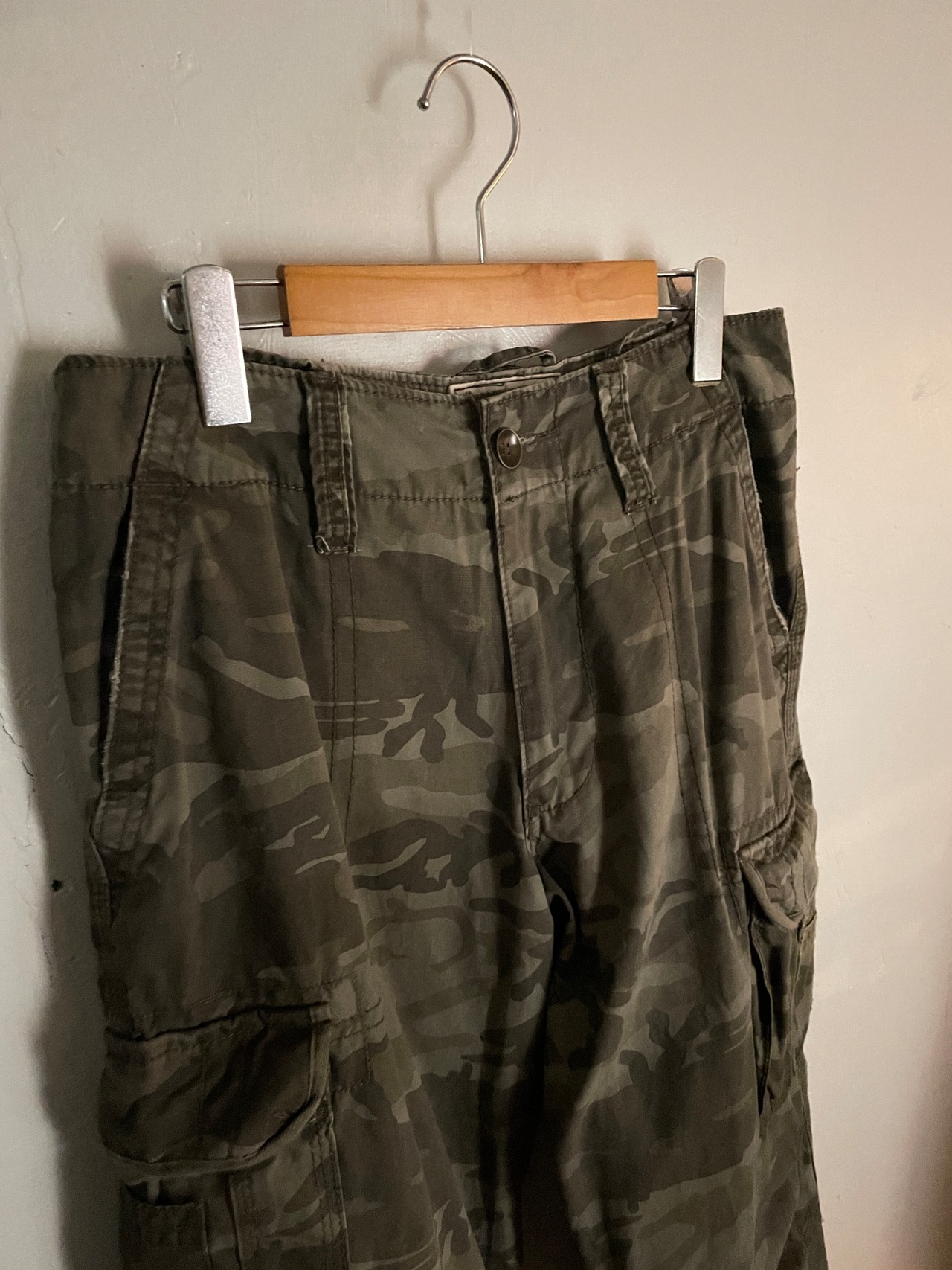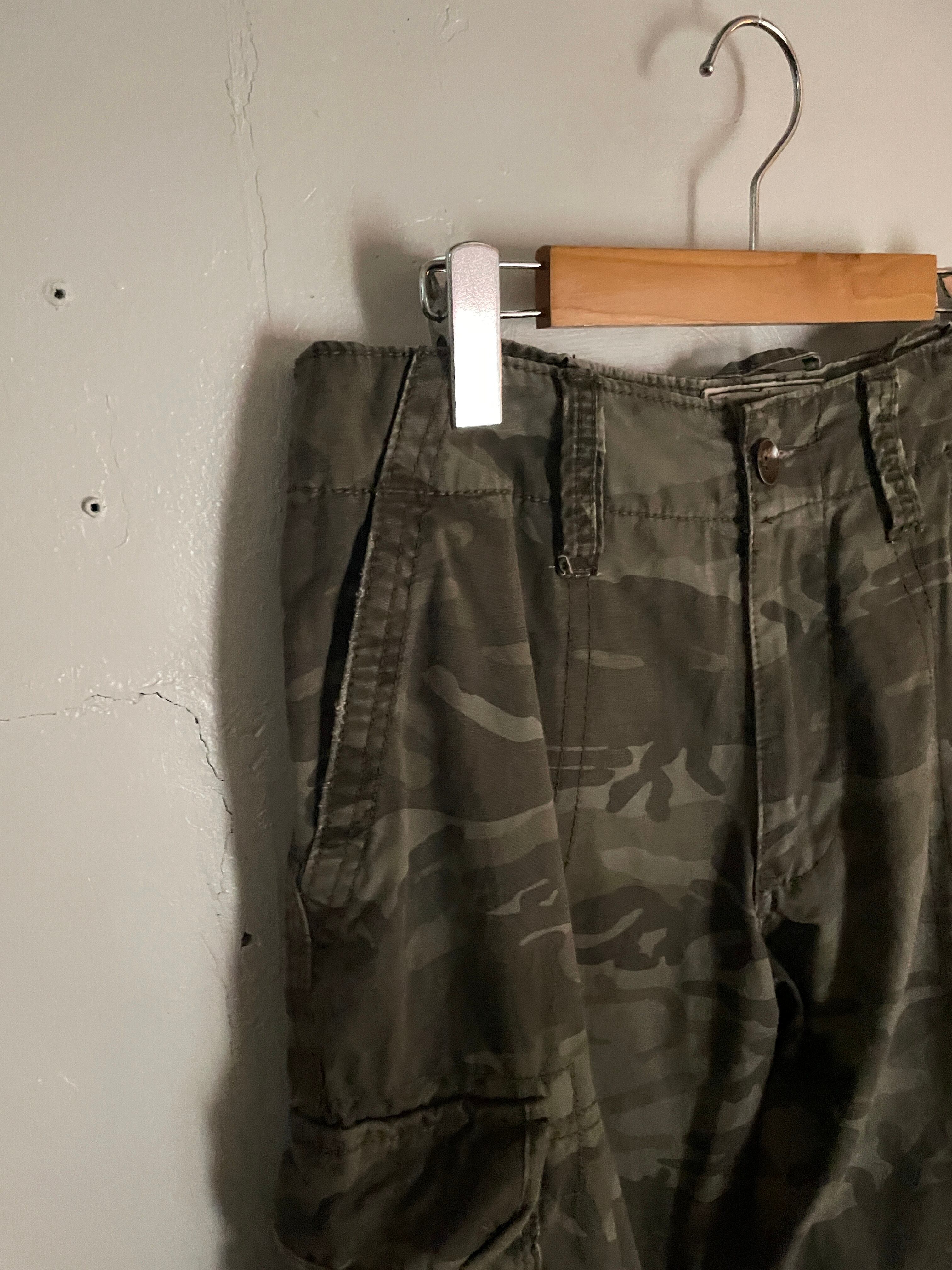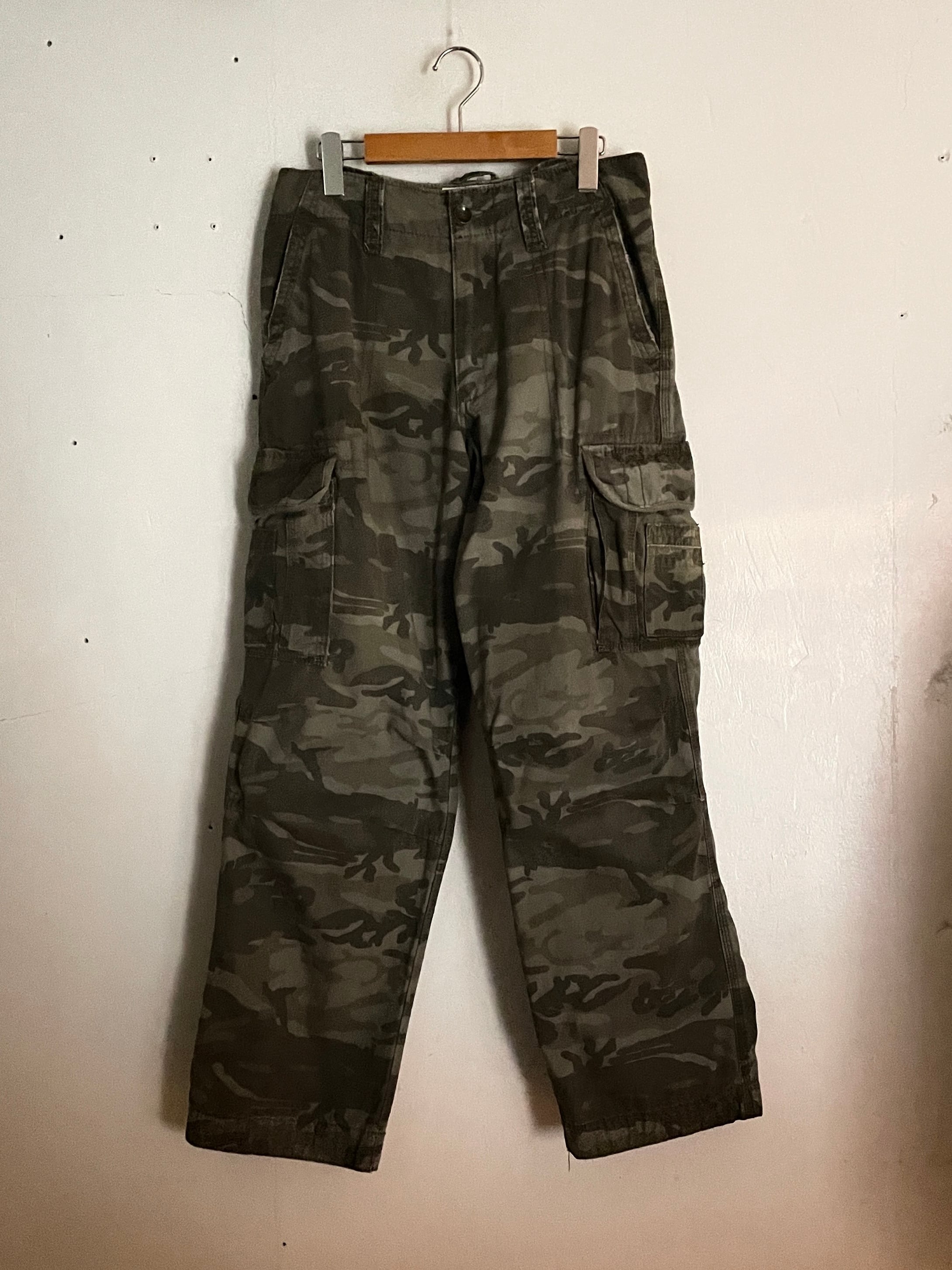 フェード味のある迷彩柄で、豊富なポケッとが魅力的な、カーゴパンツ。鞄なんていらないくらいのポケットの量。機能性抜群です。ガツンとした太さのあるワイドシルエット。Y2Kな雰囲気も感じられます。軽めなコットン素材なので、履き心地も◎。シンプルになりがちな春は、こういったデザインの効いたパンツは確実に活躍してくれます。