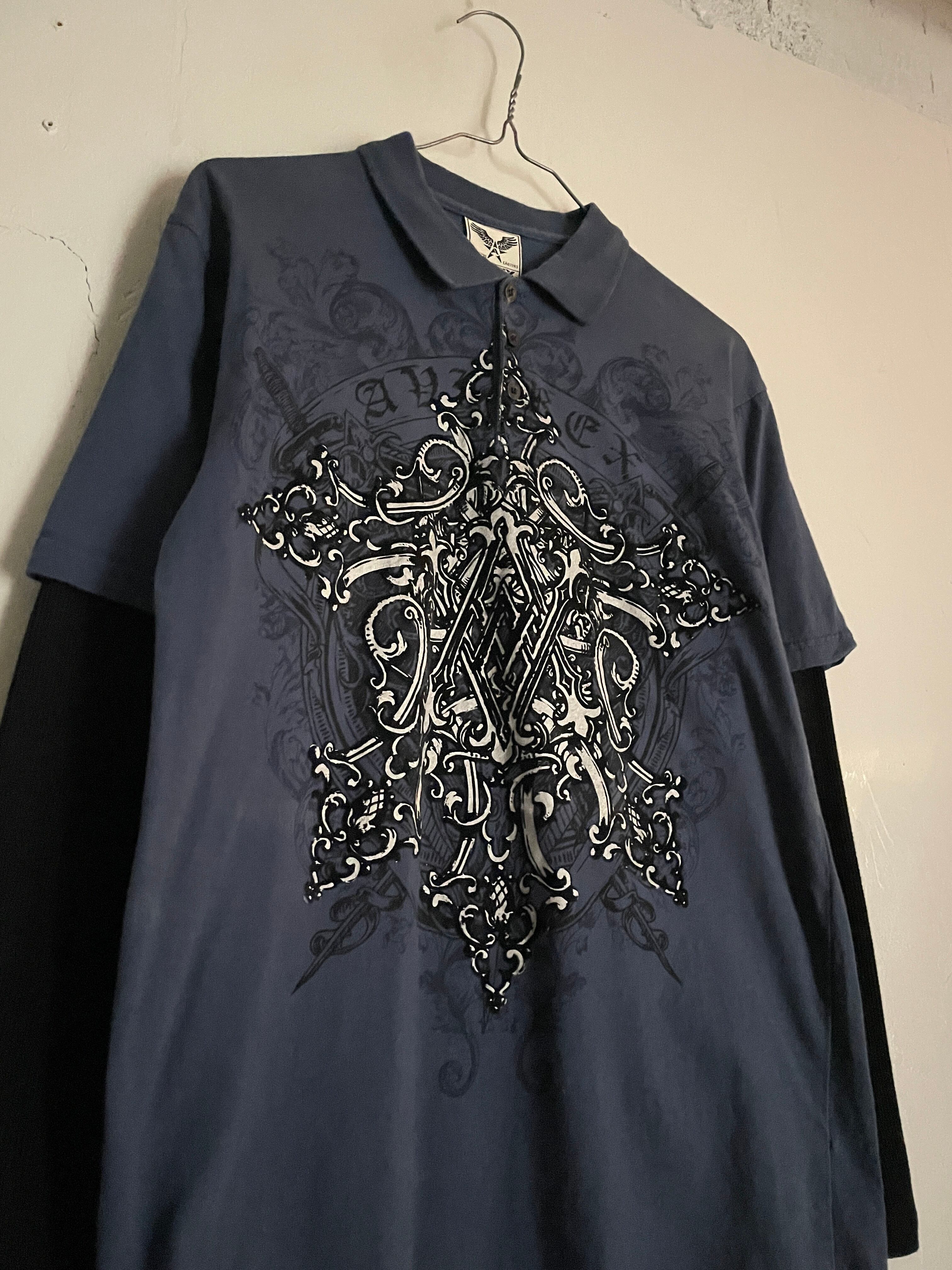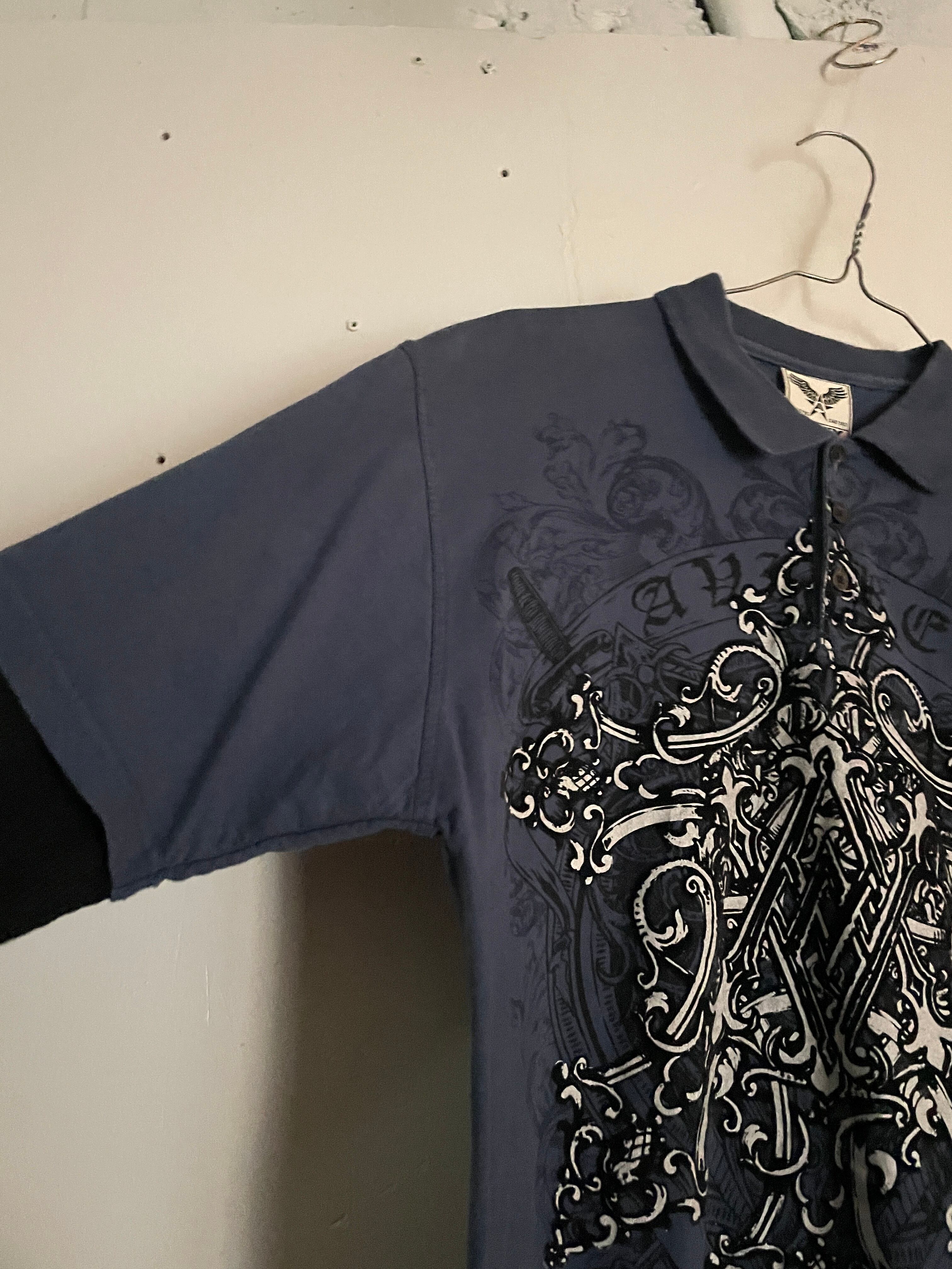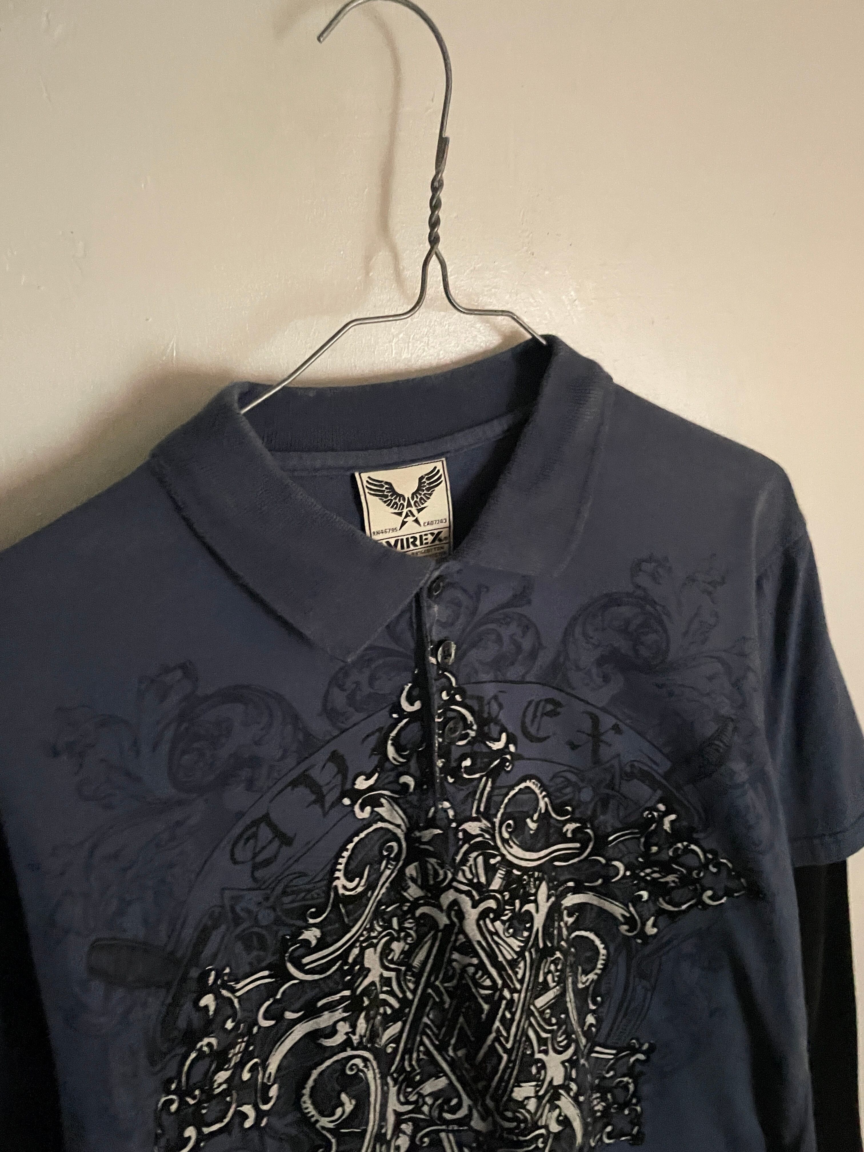 Old AVIREX Blue Printed Layered Polo Shirt