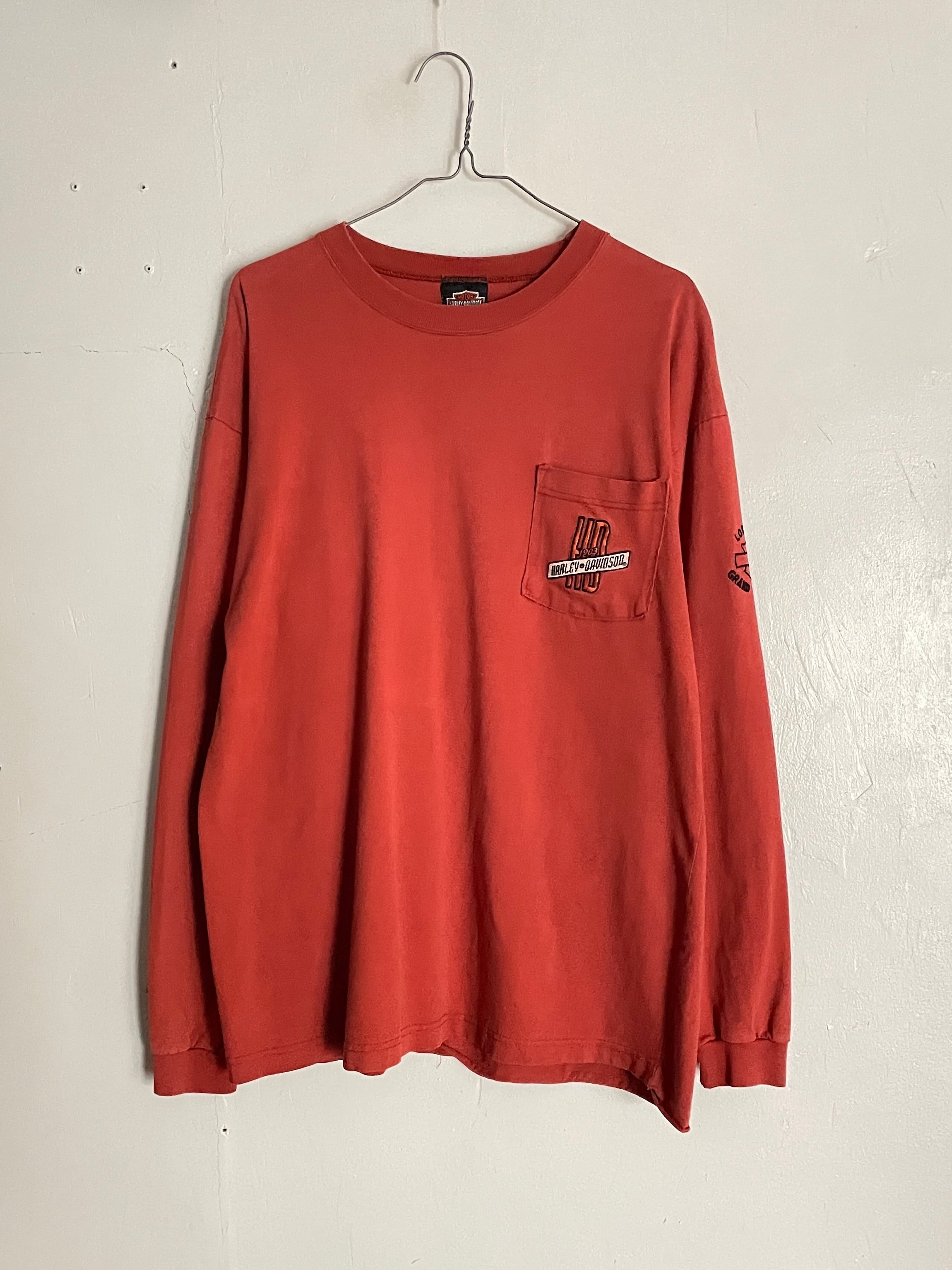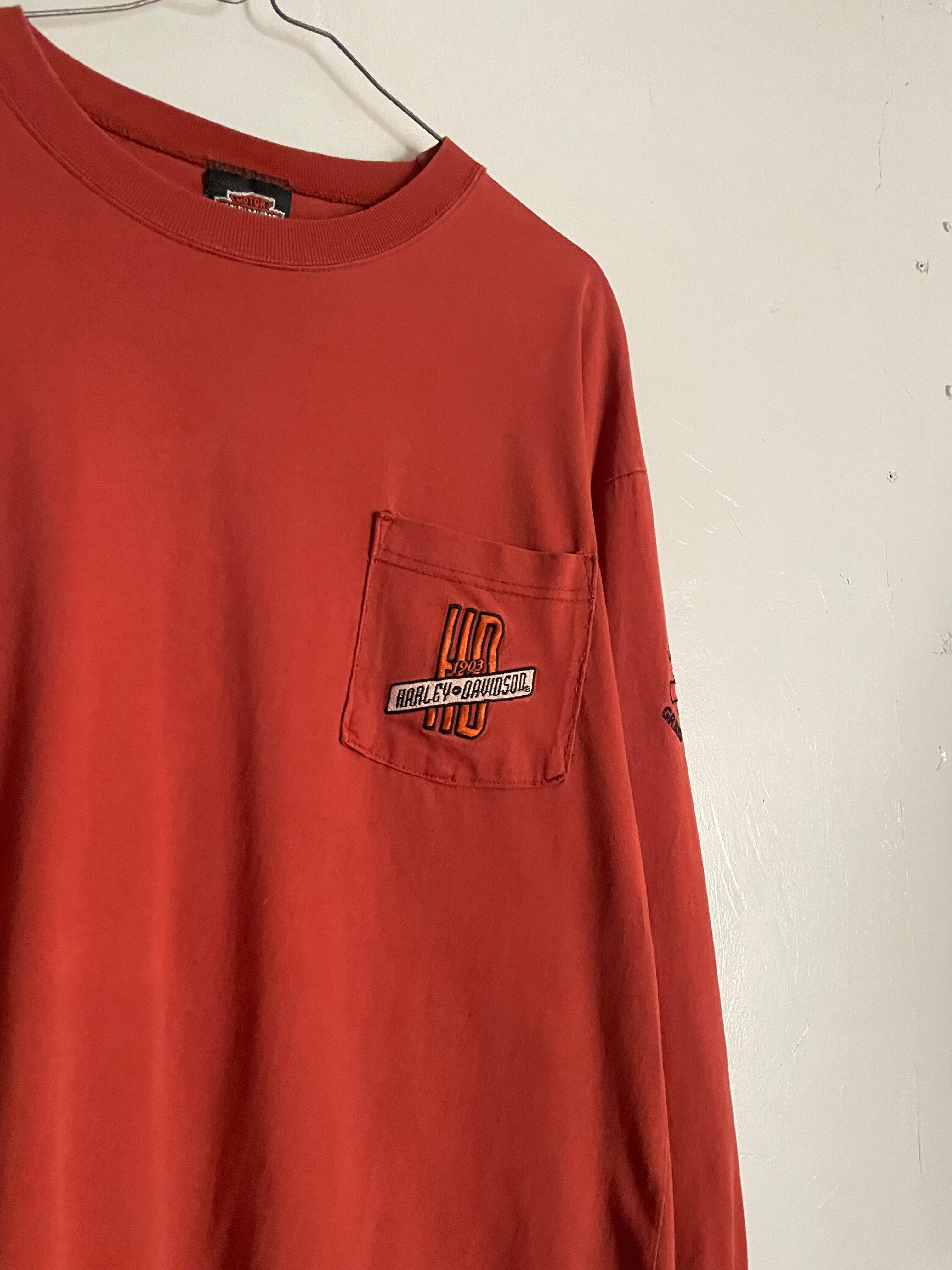 Old HARLEY-DAVIDSON Orange Logo Pocket L/S T Shirt