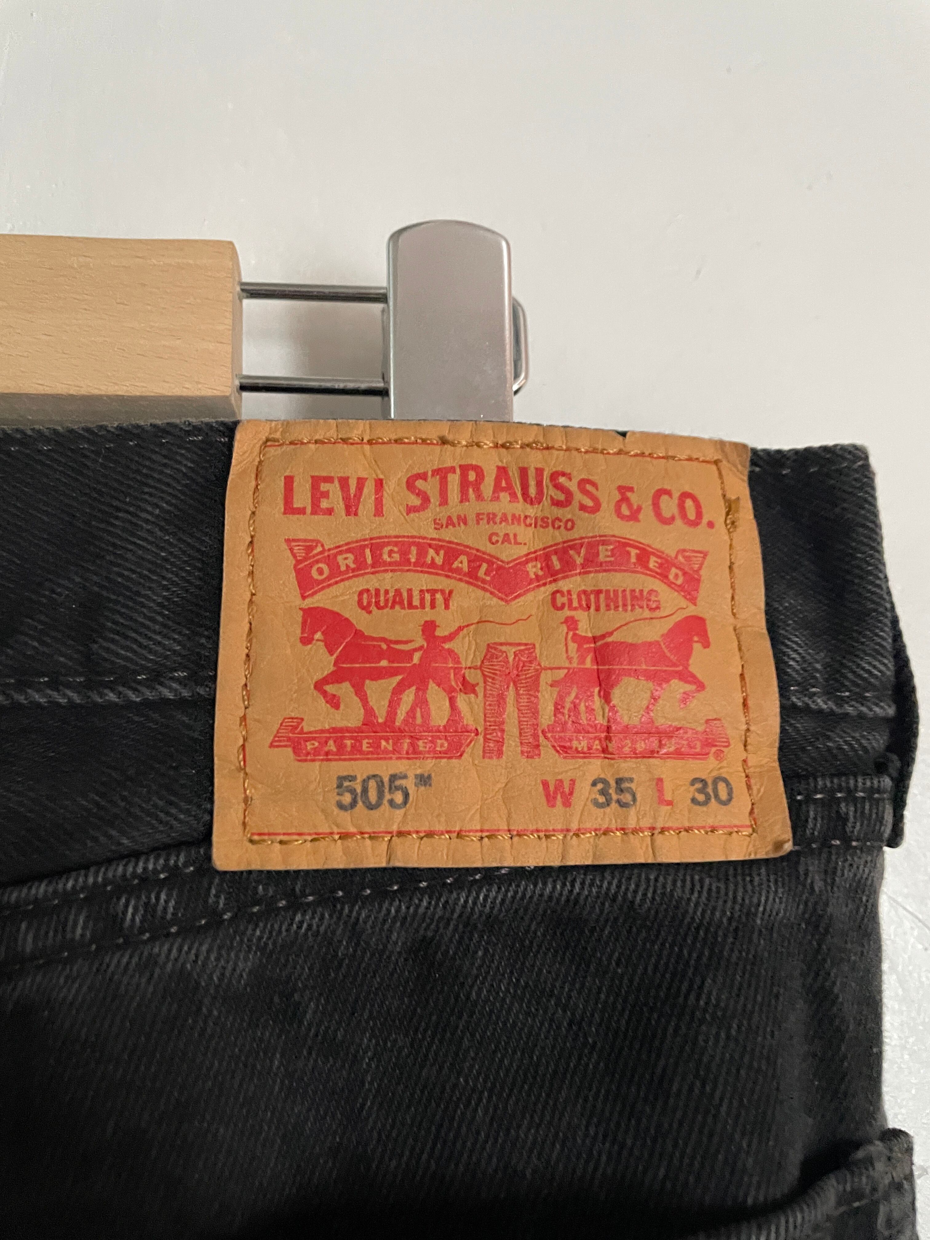 やや褪せたブラックカラーの、リーバイス505デニムパンツ。しっかりと太さのあるワイドストレートシルエット。雰囲気ありの一本。様々なアイテムとの相性が良く、季節問わずガシガシ履ける一本です。持っておいて損はしないアイテムかと思います。