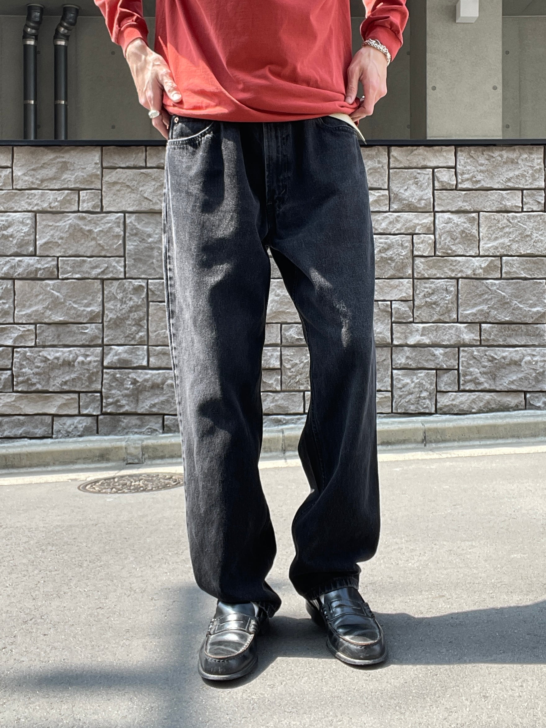 褪せたブラックカラーが雰囲気抜群の、リーバイス550デニムパンツ。ガツンとしたワイドシルエットが魅力的。裾にかけて緩やかにテーパードがかったシルエット。ストリートな雰囲気がたっぷり詰まった一本。様々なファッションに取り入れやすく、重宝するアイテムです。