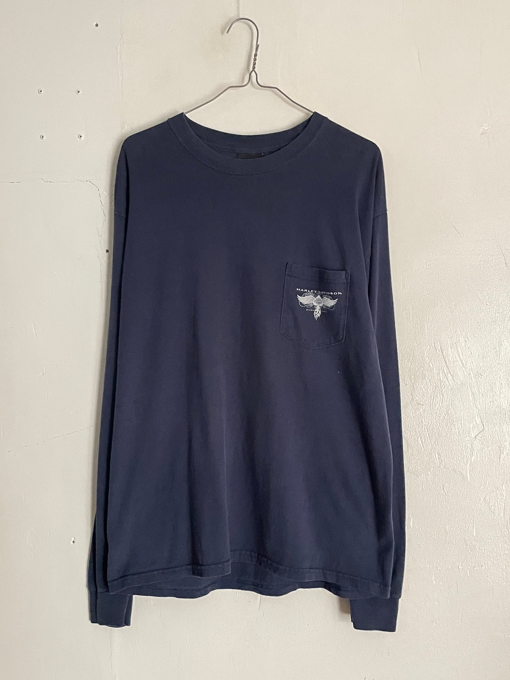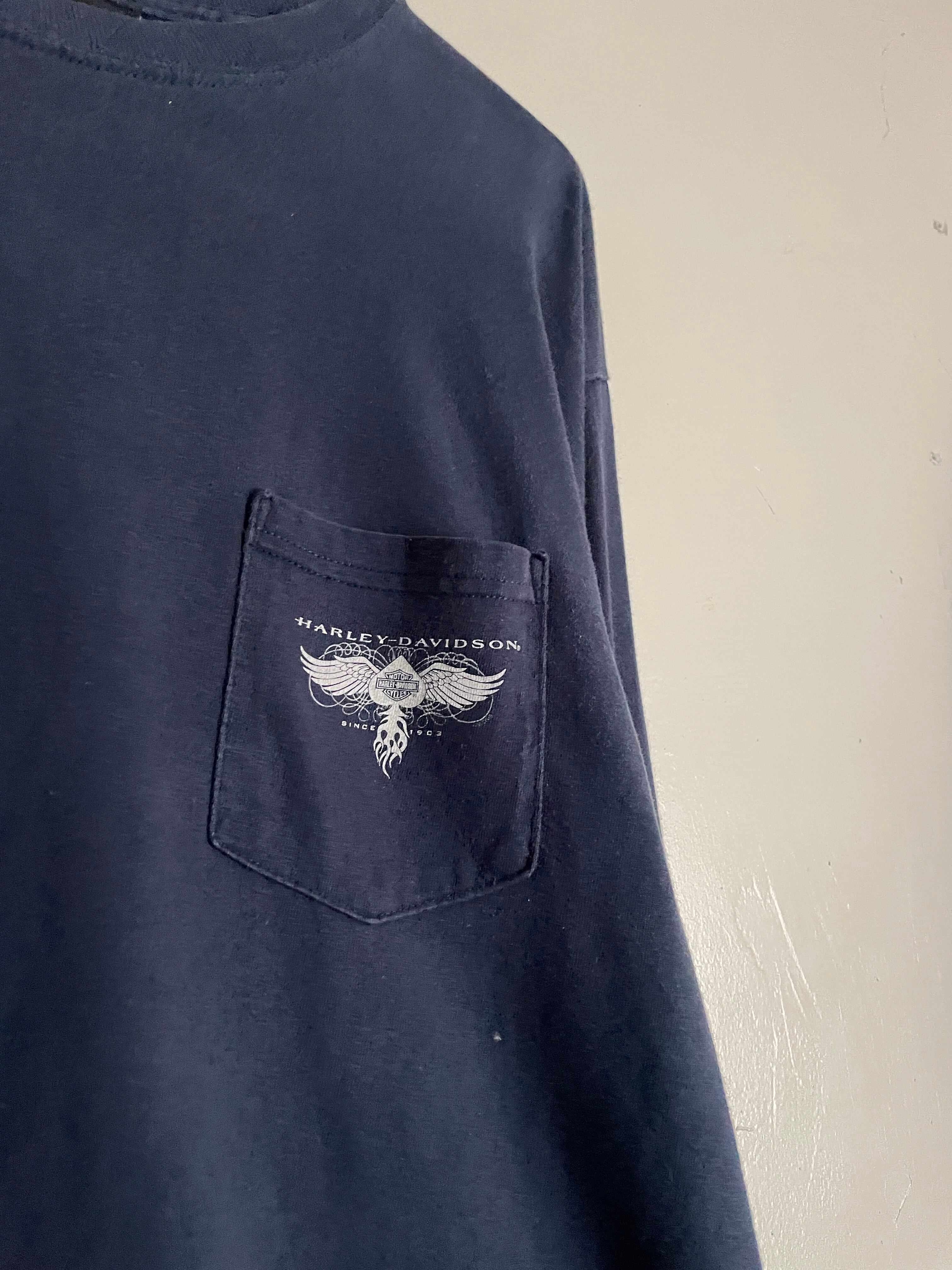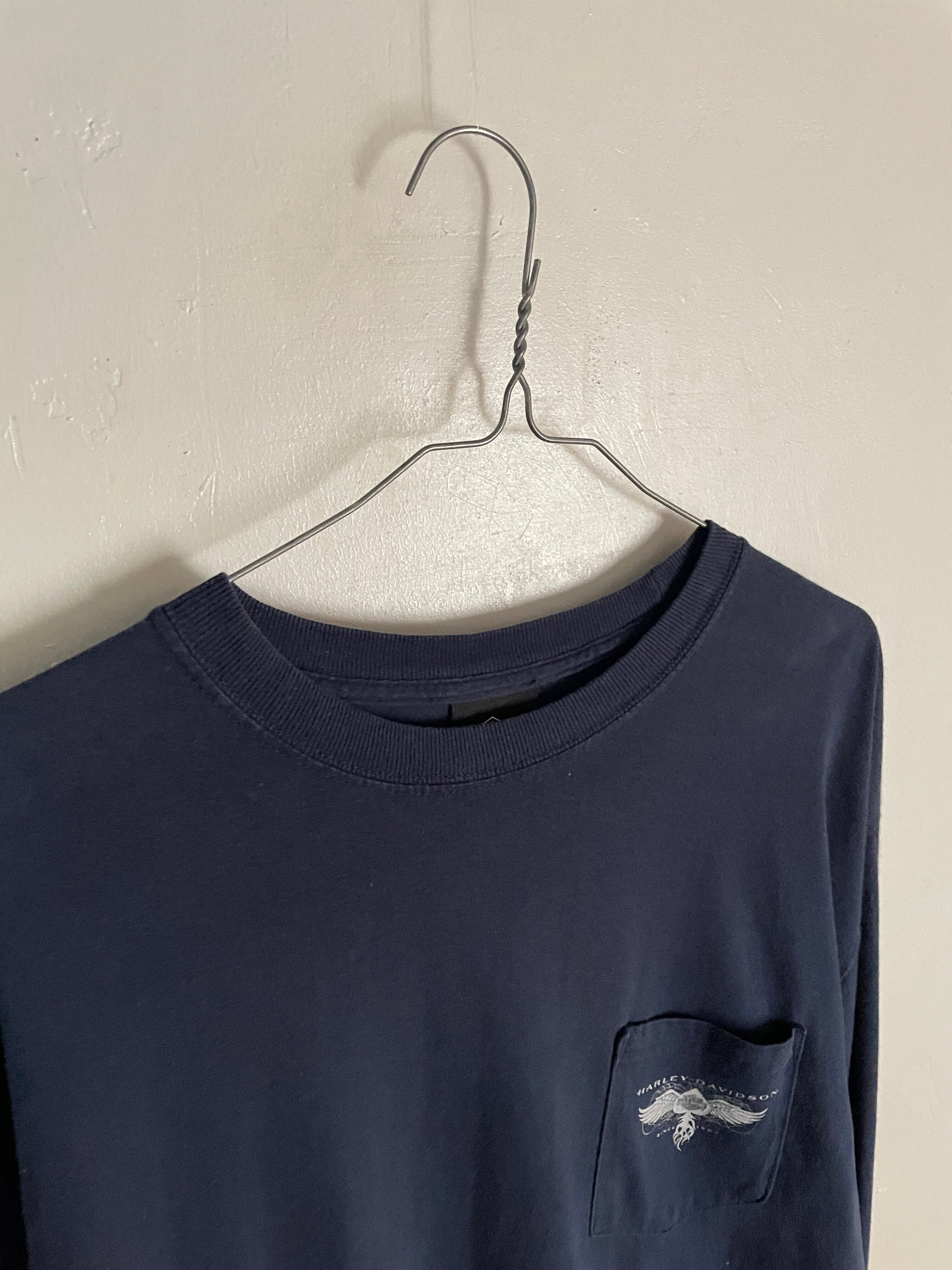 Old HARLEY-DAVIDSON Navy Double Printed Pocket L/S T Shirt