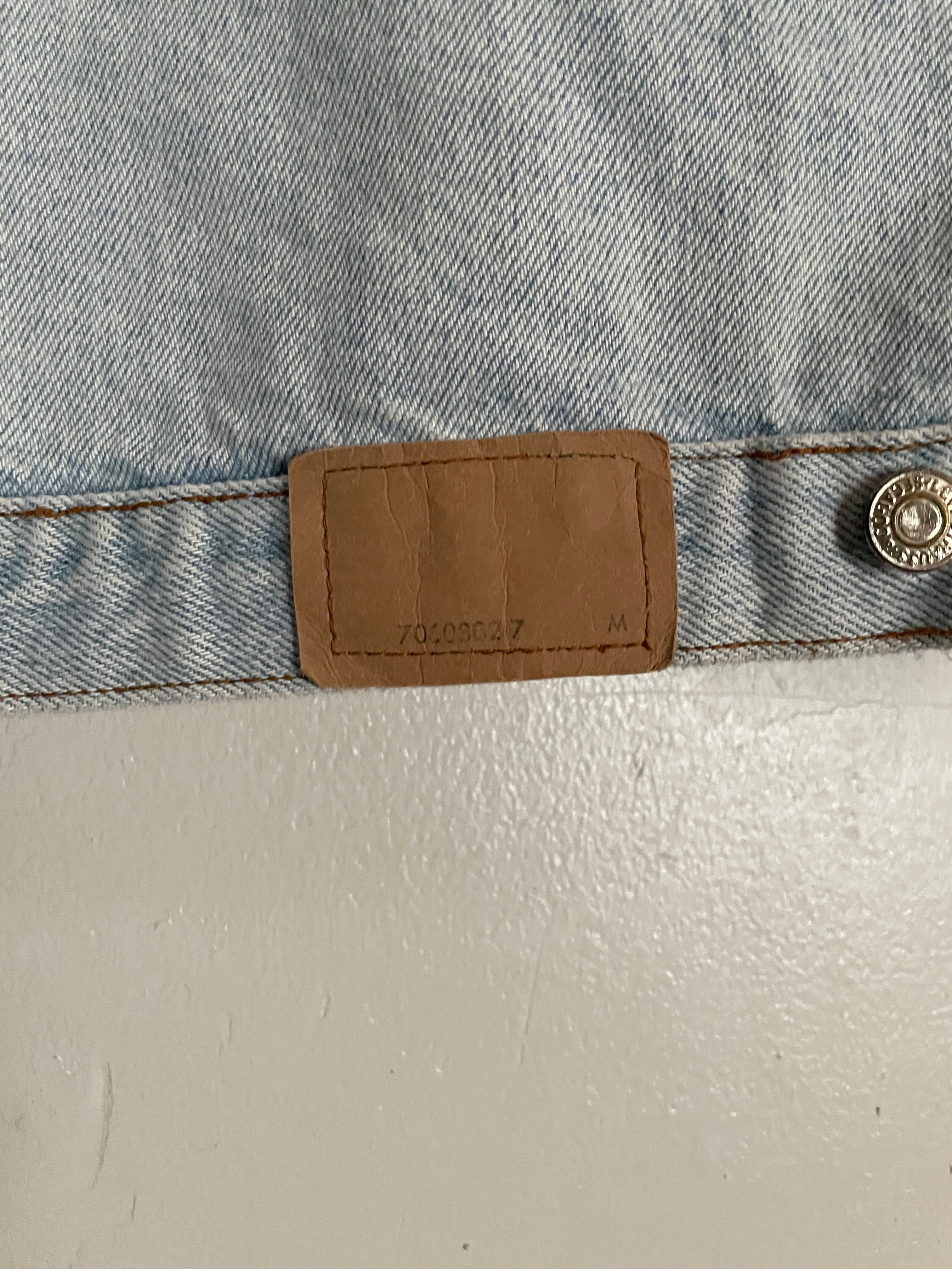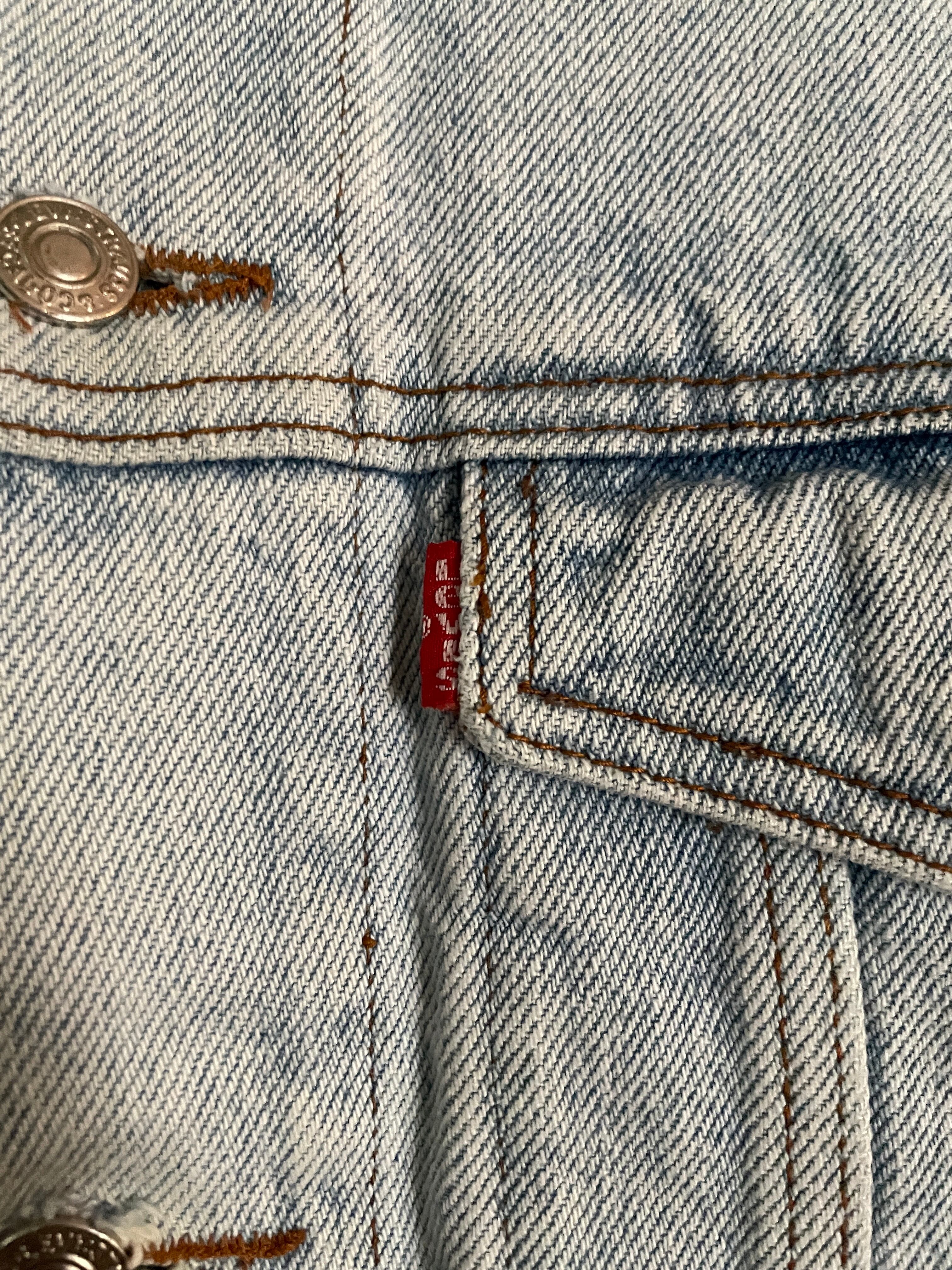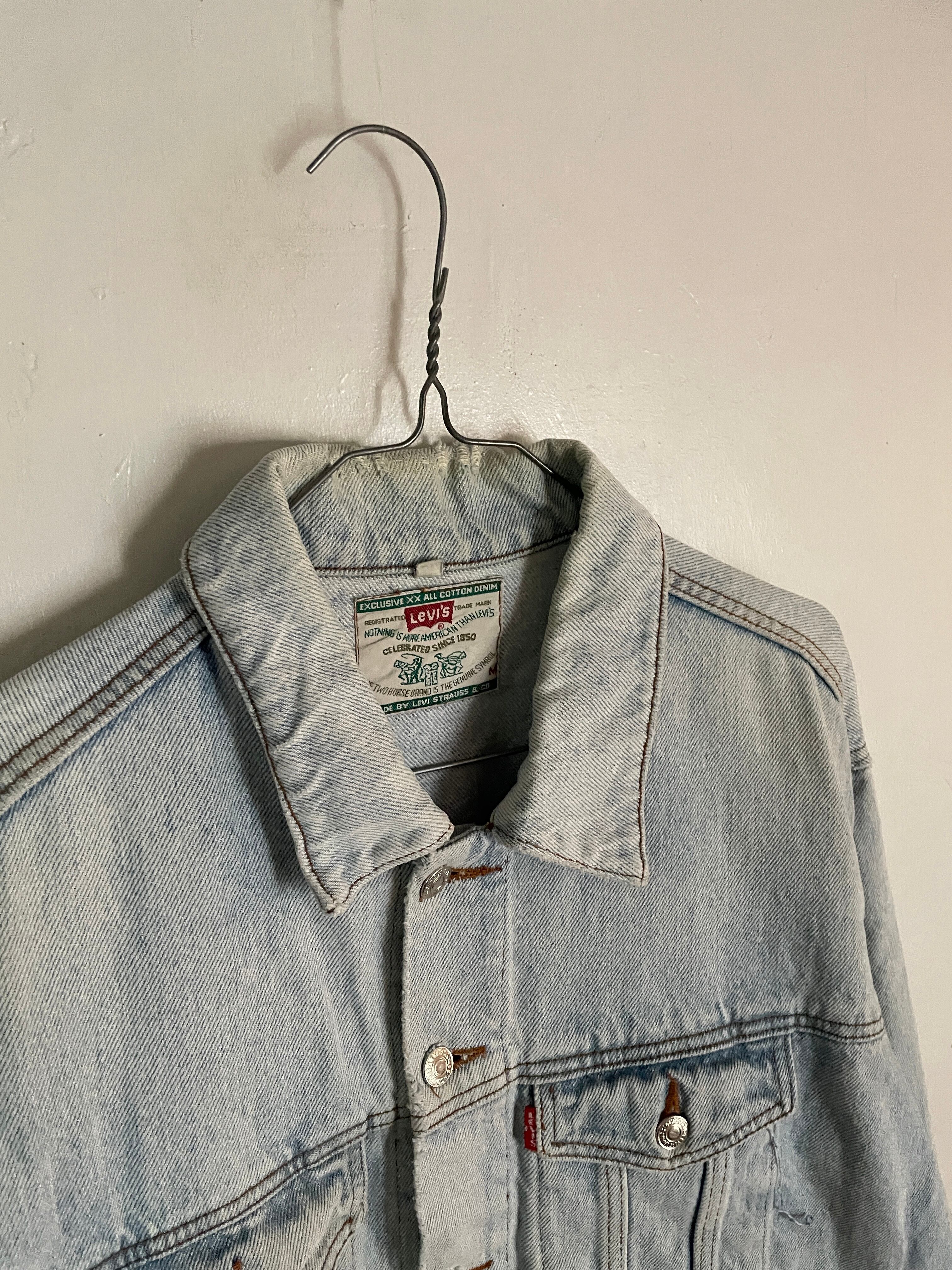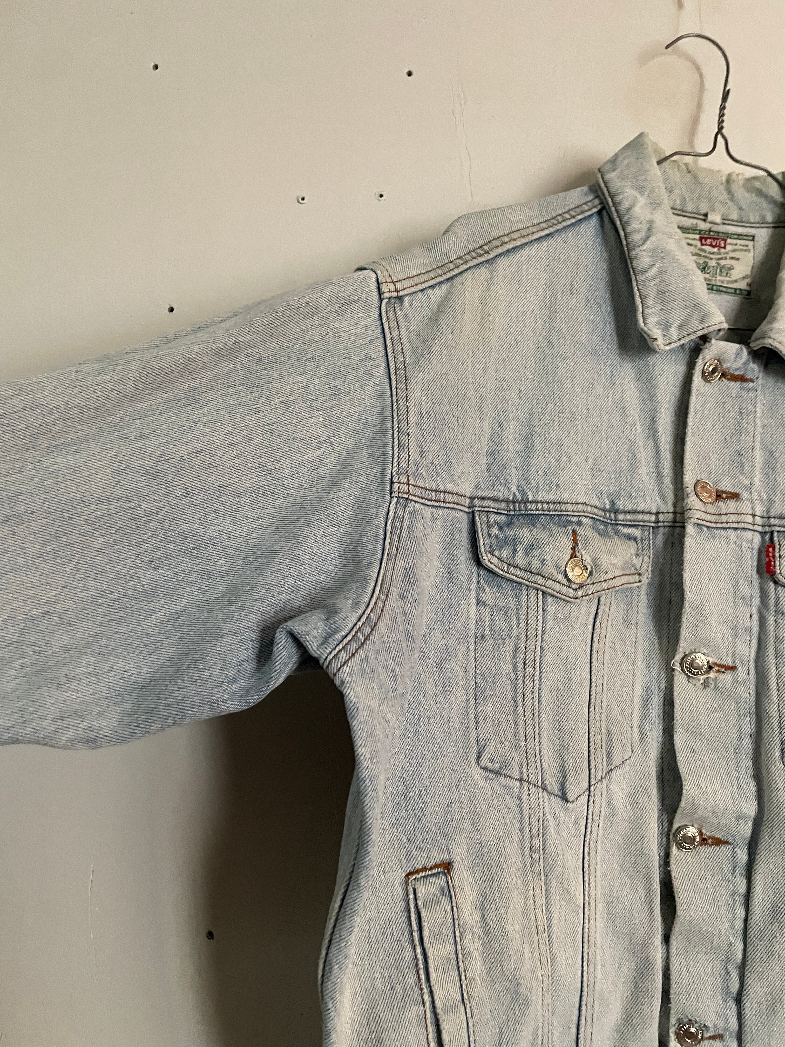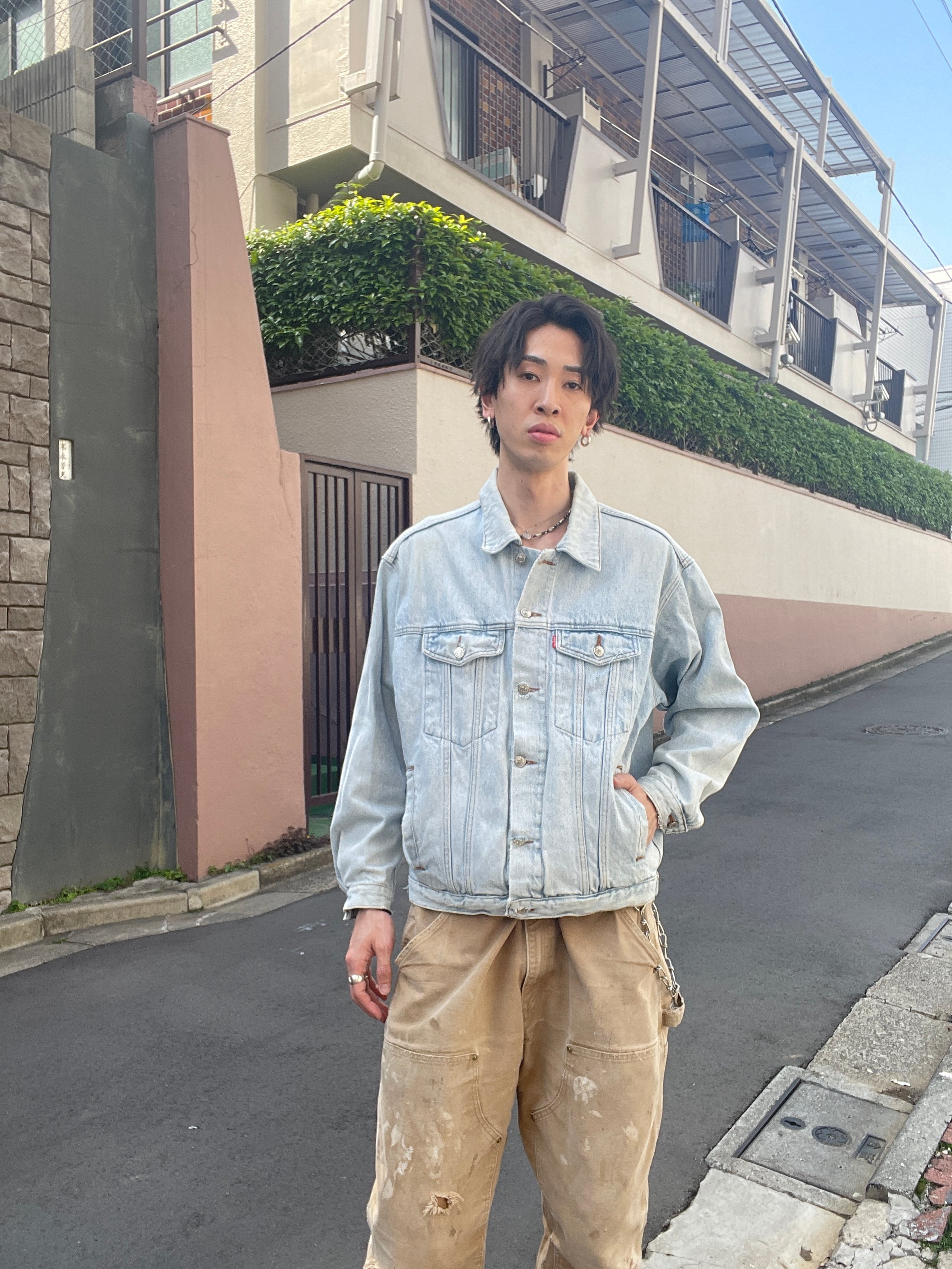 リーバイスのデニムジャケットは一着持っておきたいマストアイテム!Mサイズ表記ですがメンズもゆるっと羽織れるサイズ感で、たっぷりめな身幅が今っぽいシルエットでかわいいです。
