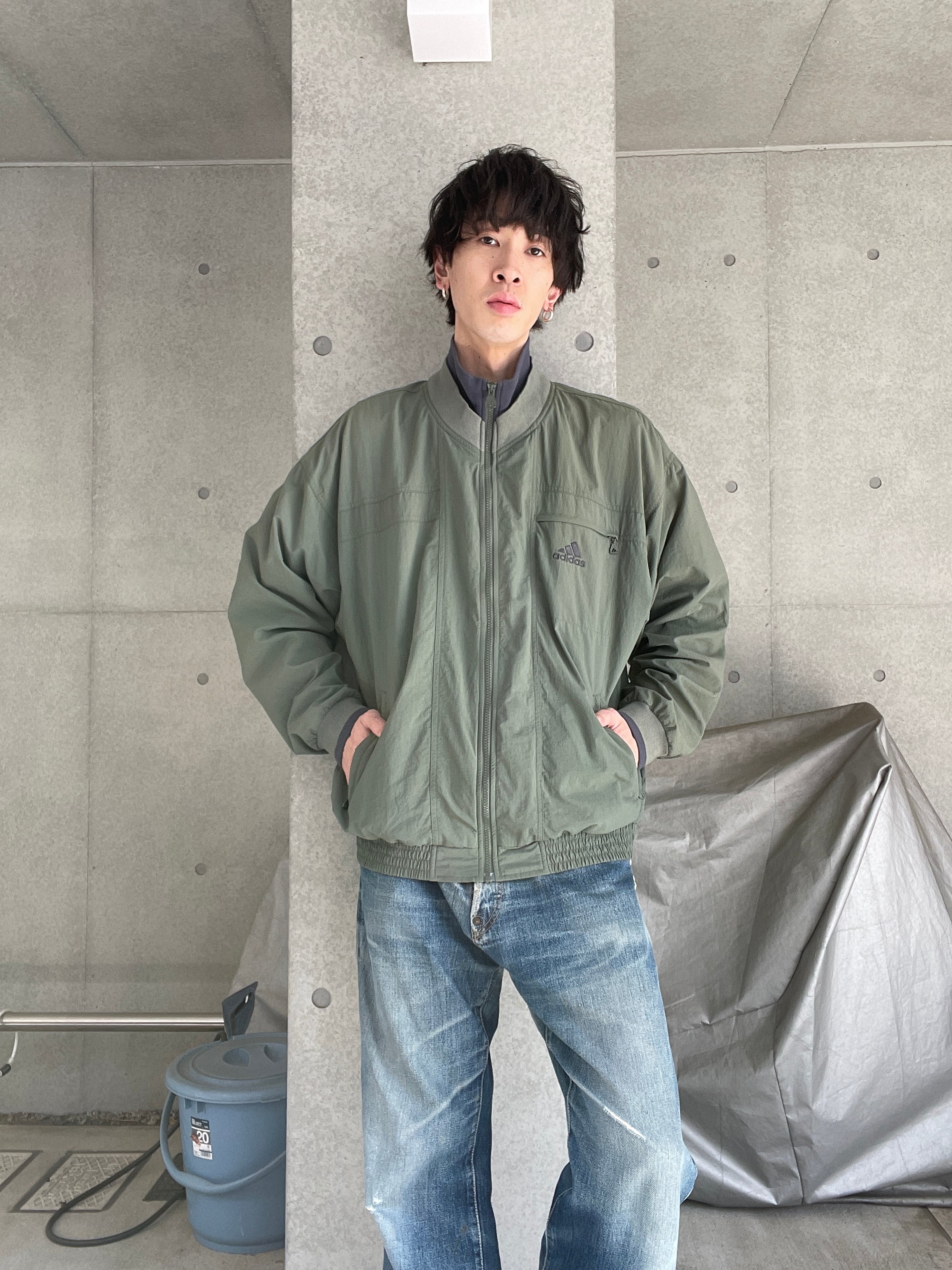 90〜00年代アディダスのナイロンジャケットです。襟部分はスウェットを重ねたようなレイヤードデザインになっていてシンプルながらに一癖のあって可愛いです。裏地もしっかり付いてて暖かいですがメッシュ地にもなっていて通気性もいいのでたくさん着回せれる一枚です。