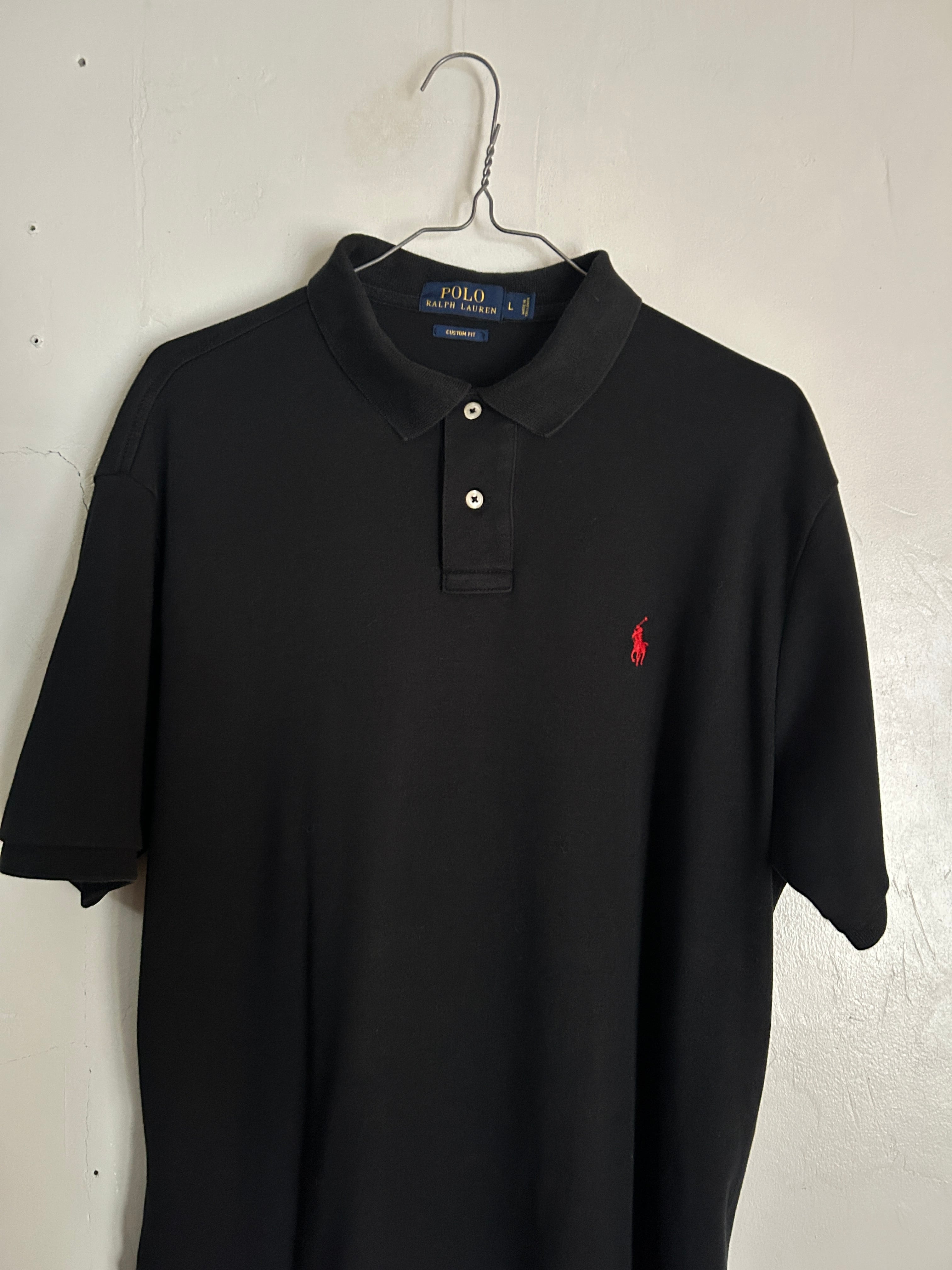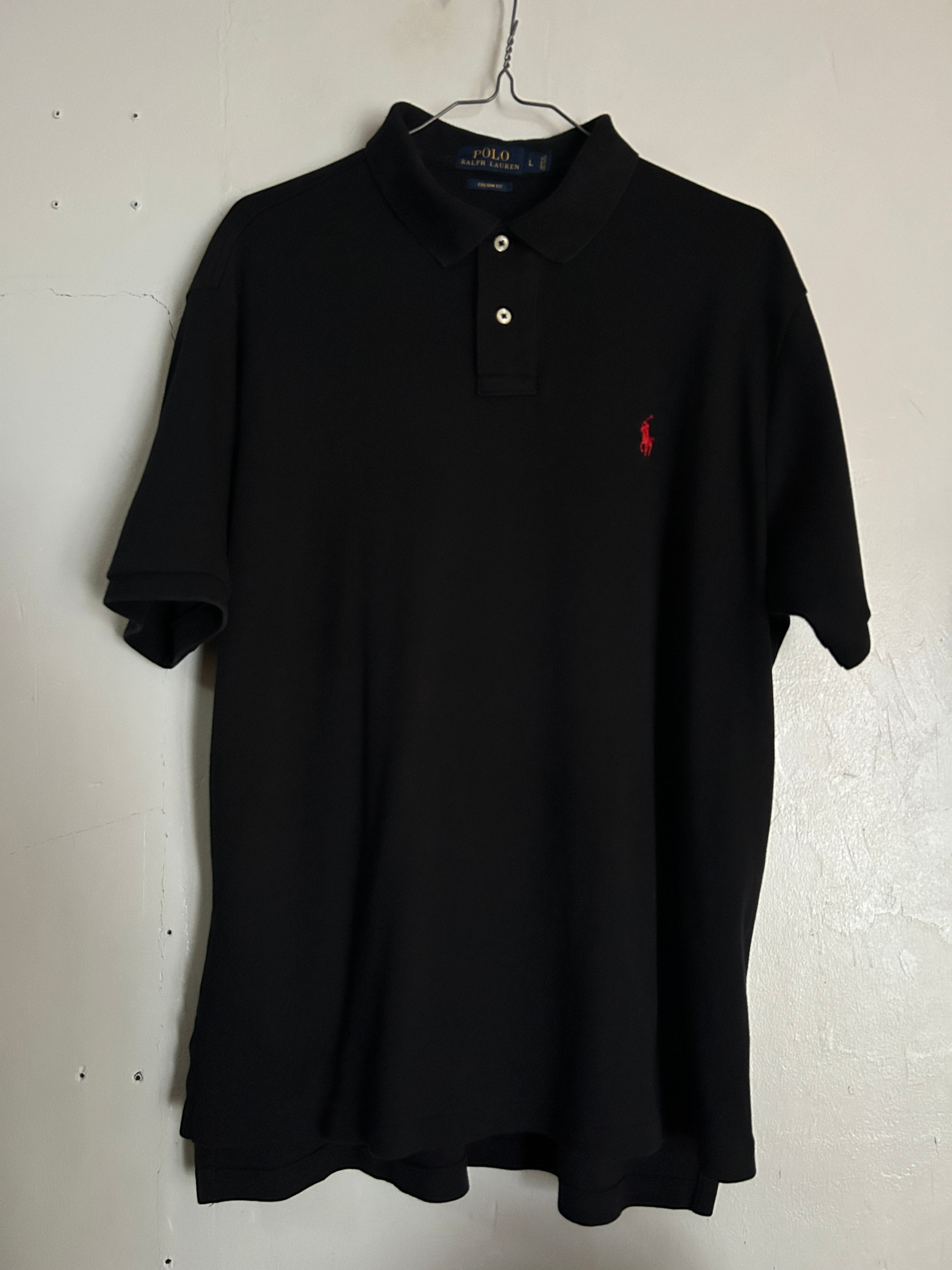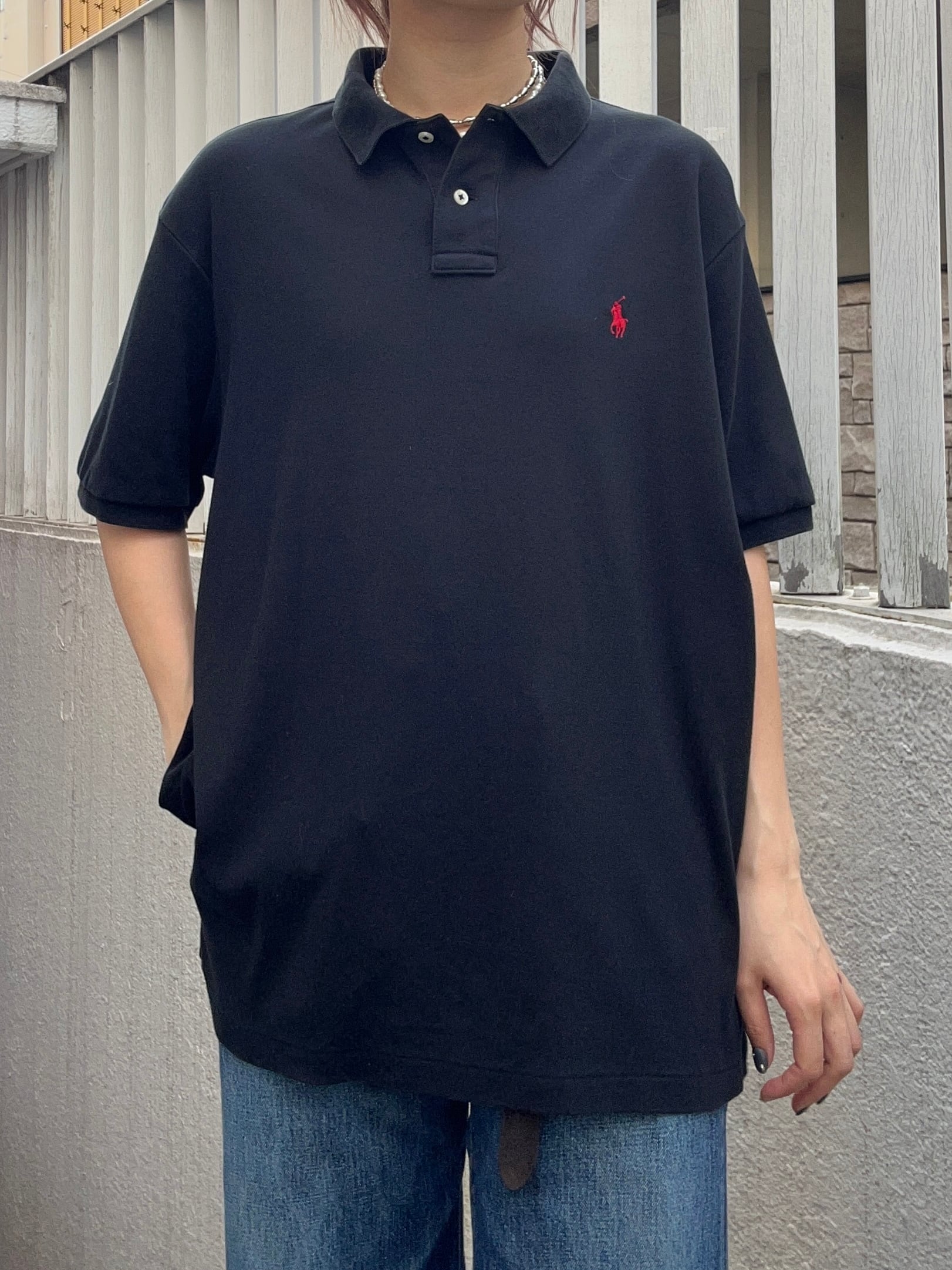ブラックボディに映えるレッドポニーが印象的なラルフローレンのポロシャツ。ベーシックな配色ながら、ロゴのカラーコントラストによって程良い主張が生まれ、シンプル過ぎないバランスに仕上がっています。ややゆとりのあるシルエットでリラックス感があり、ストレート寄りのスタイリングにも相性抜群。一枚でもインナー使いでもアクセントになる、使い勝手のいいアイテムです。