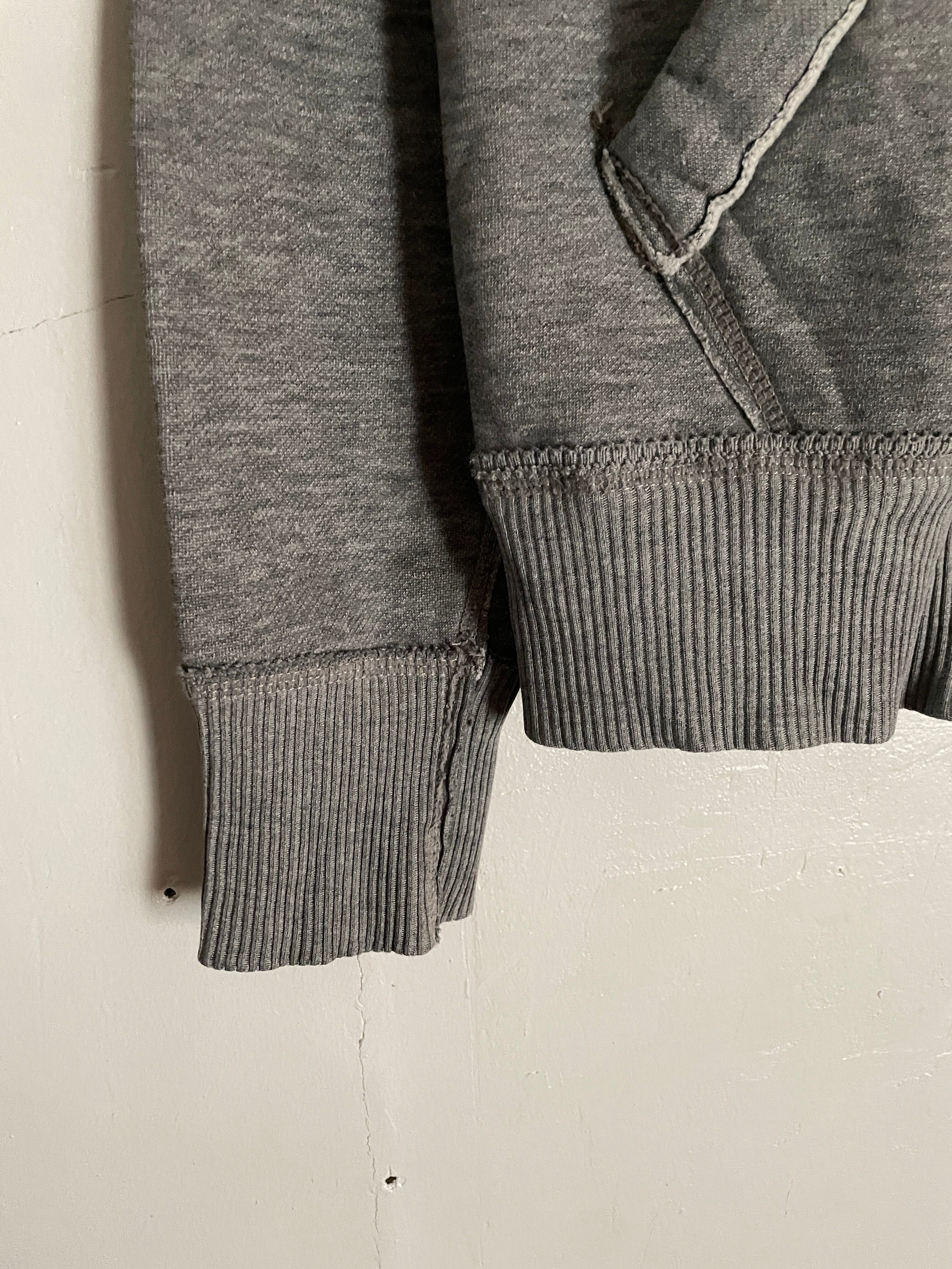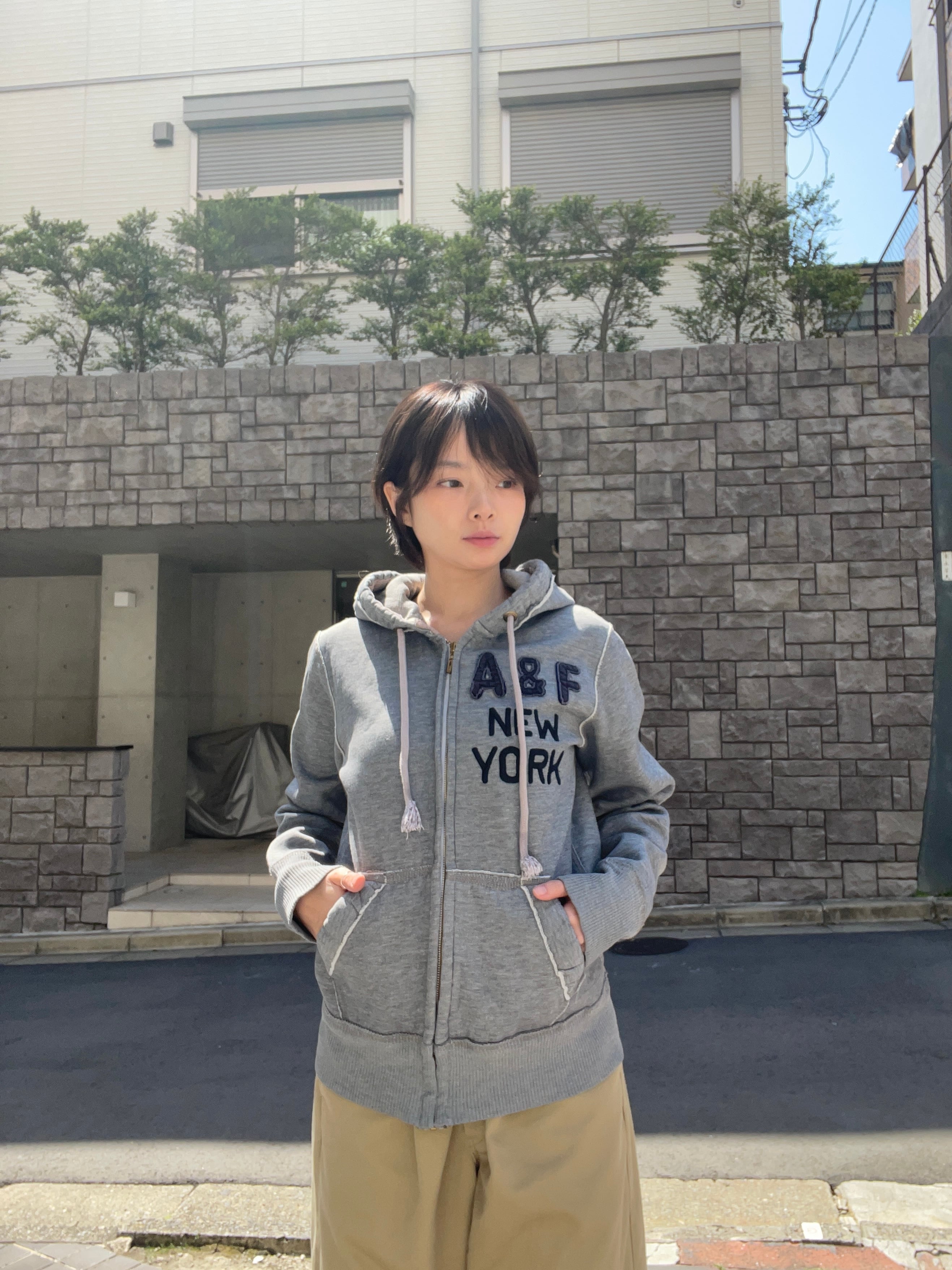 グレーボディに、立体的なロゴ刺繍が施された、アバクロンビー&フィッチのジップパーカー。ブランドらしいヴィンテージライクな雰囲気が魅力的です。全体に施された切りっぱなし風のステッチもお洒落。フード裏はサーマル地。細かな部分までこだわりが感じられる一着です。シンプルながら存在感のあるデザインで、今の時期にはライトアウターとして活躍してくれます。