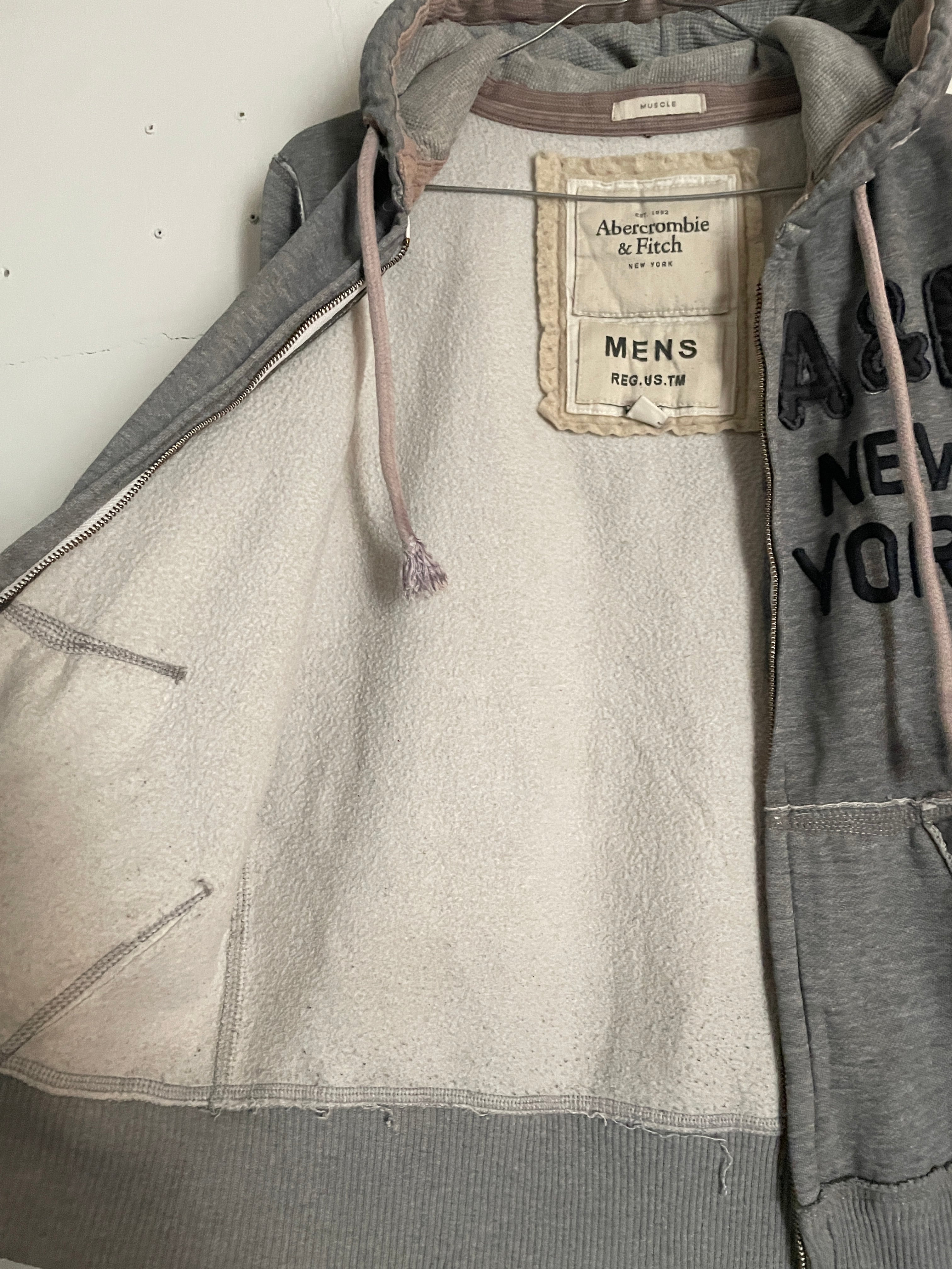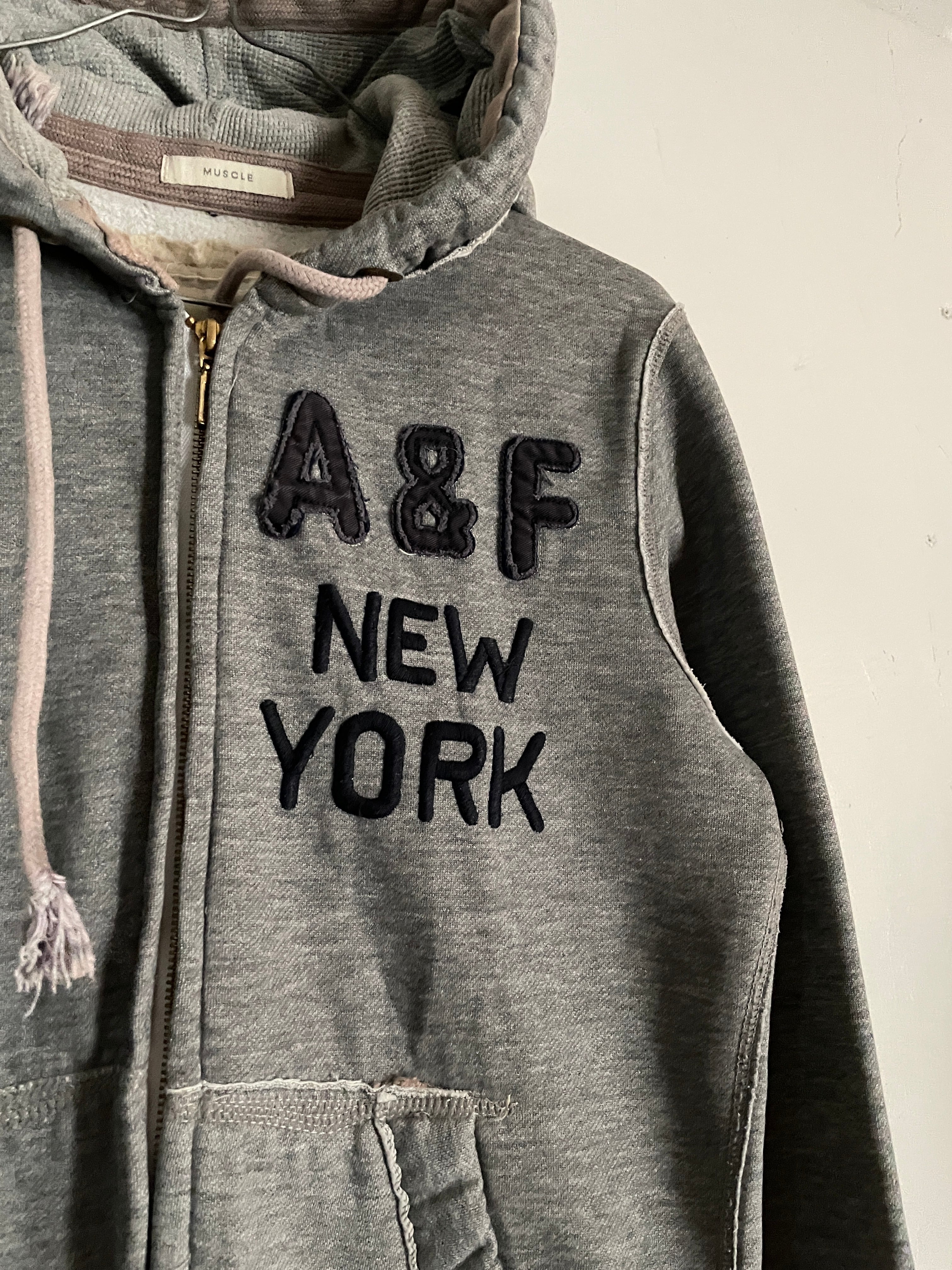 Old Abercrombie & Fitch Gray Logo Embroidery Zip Hoodie