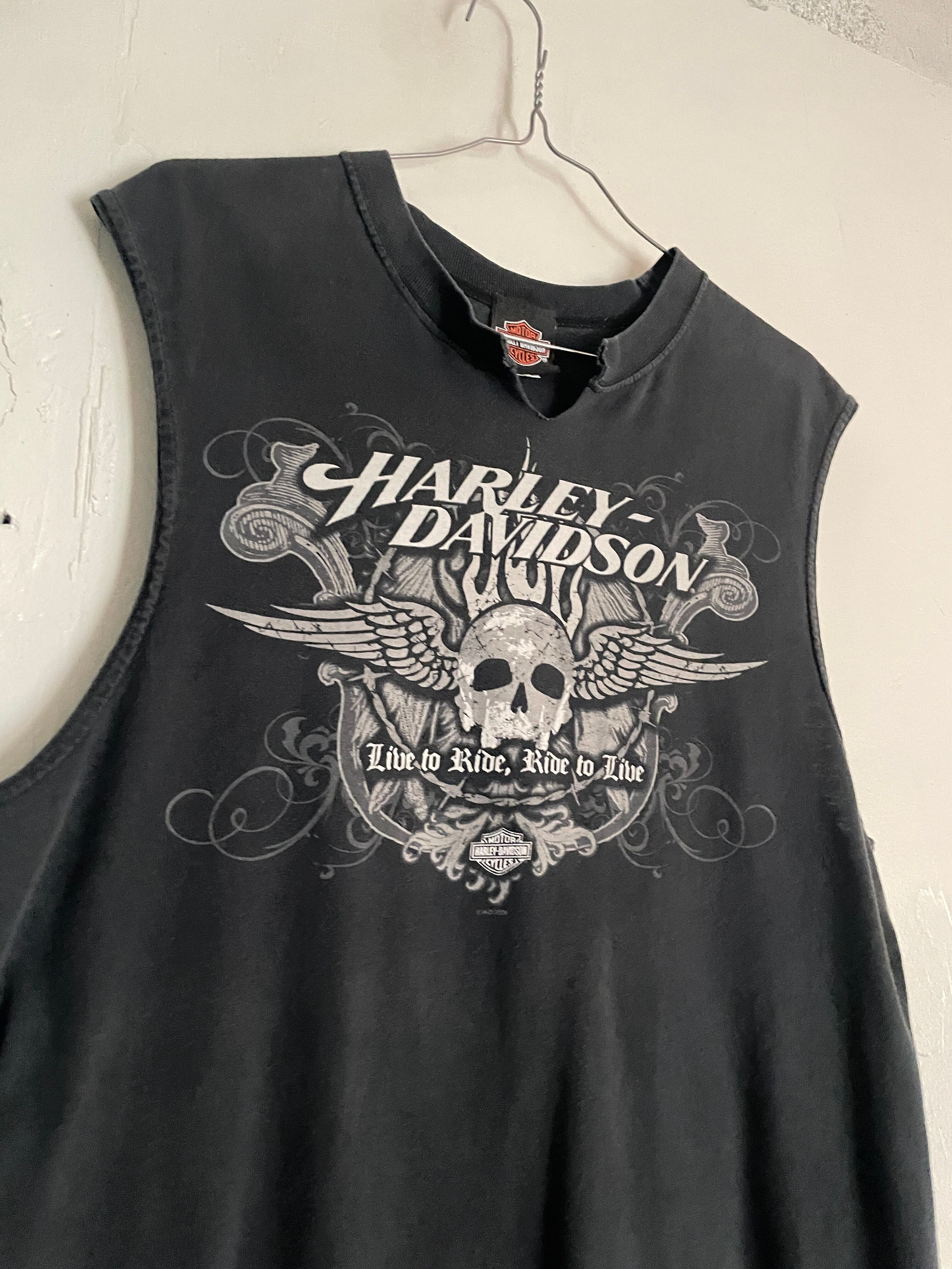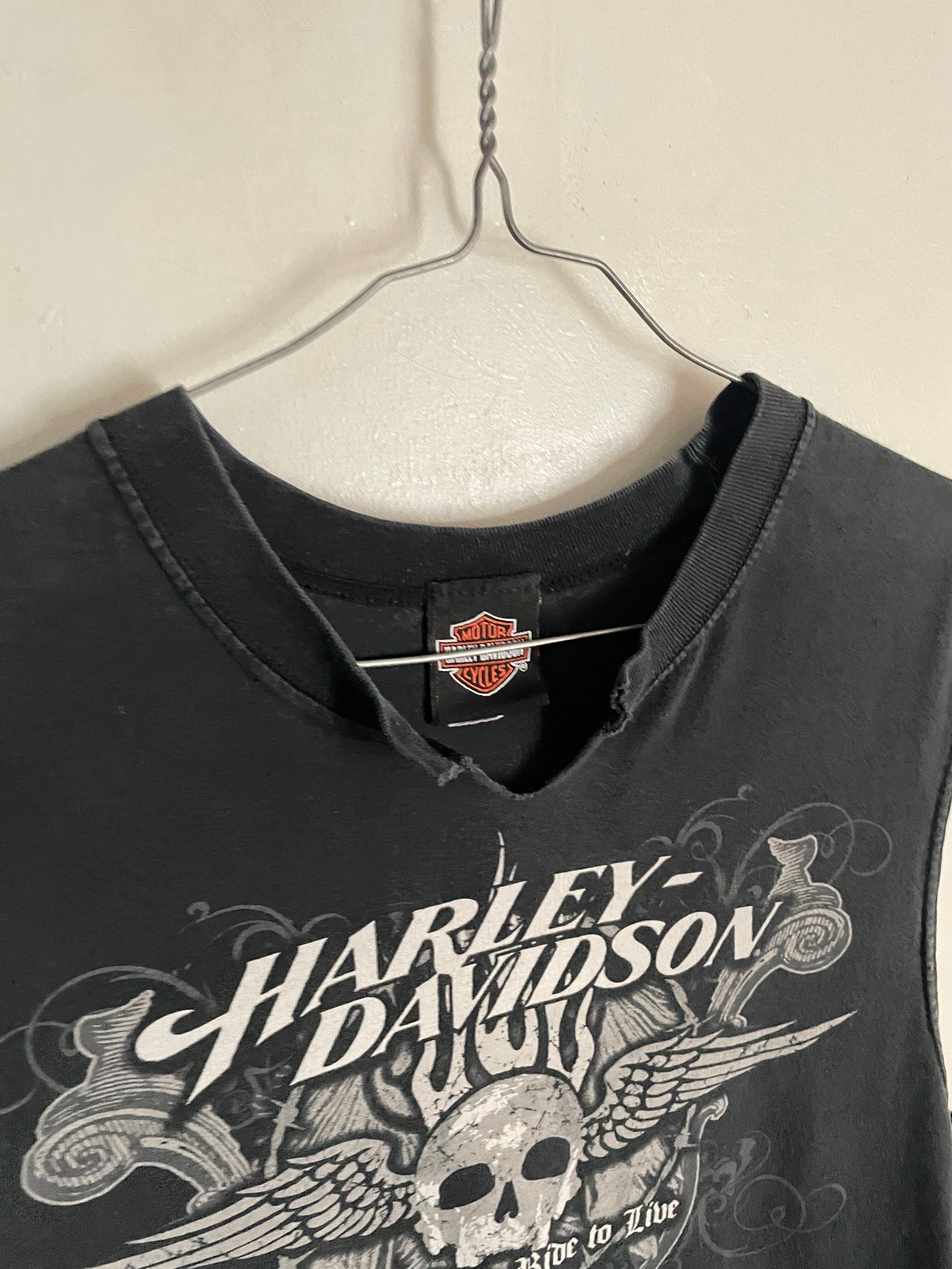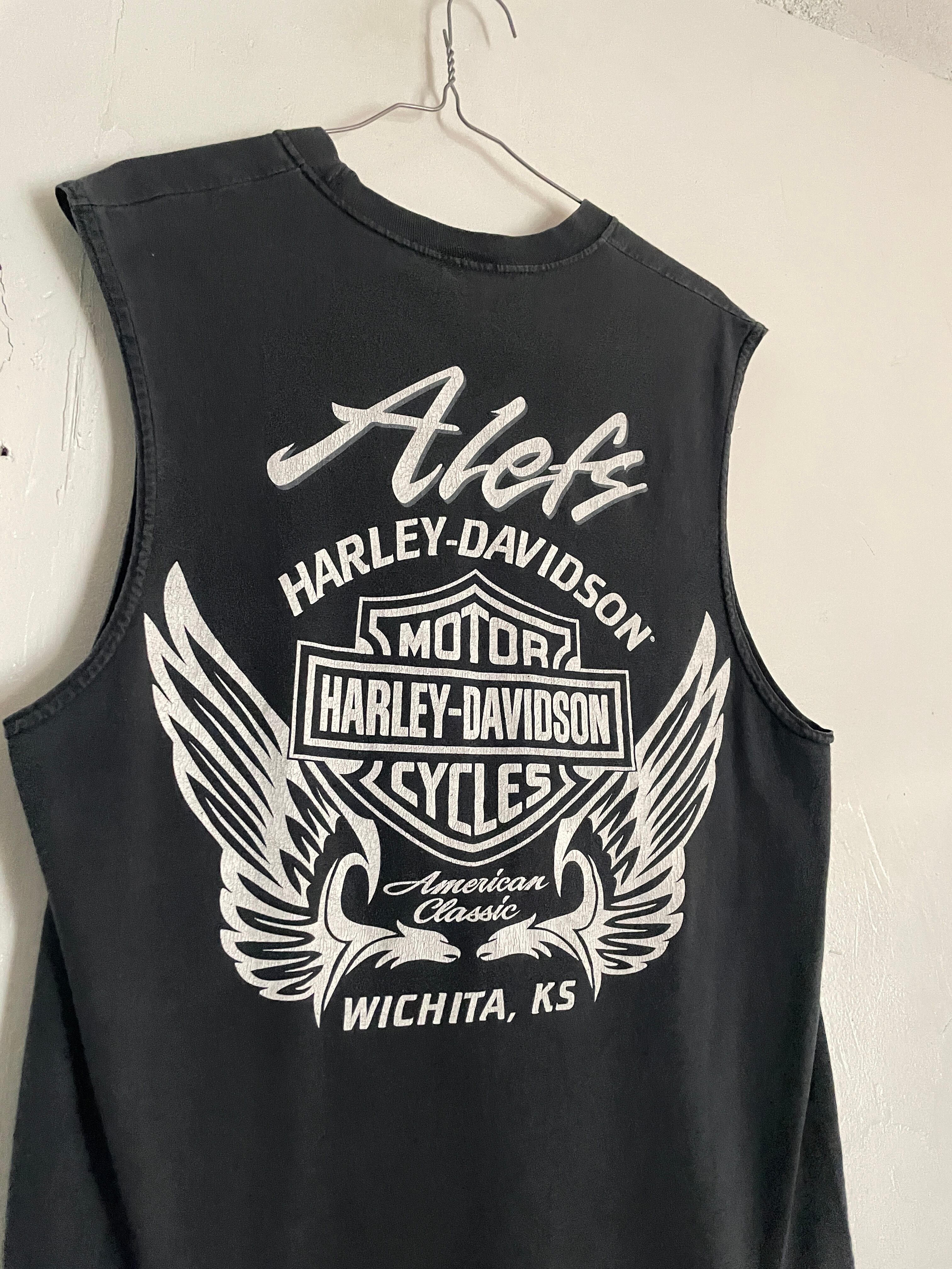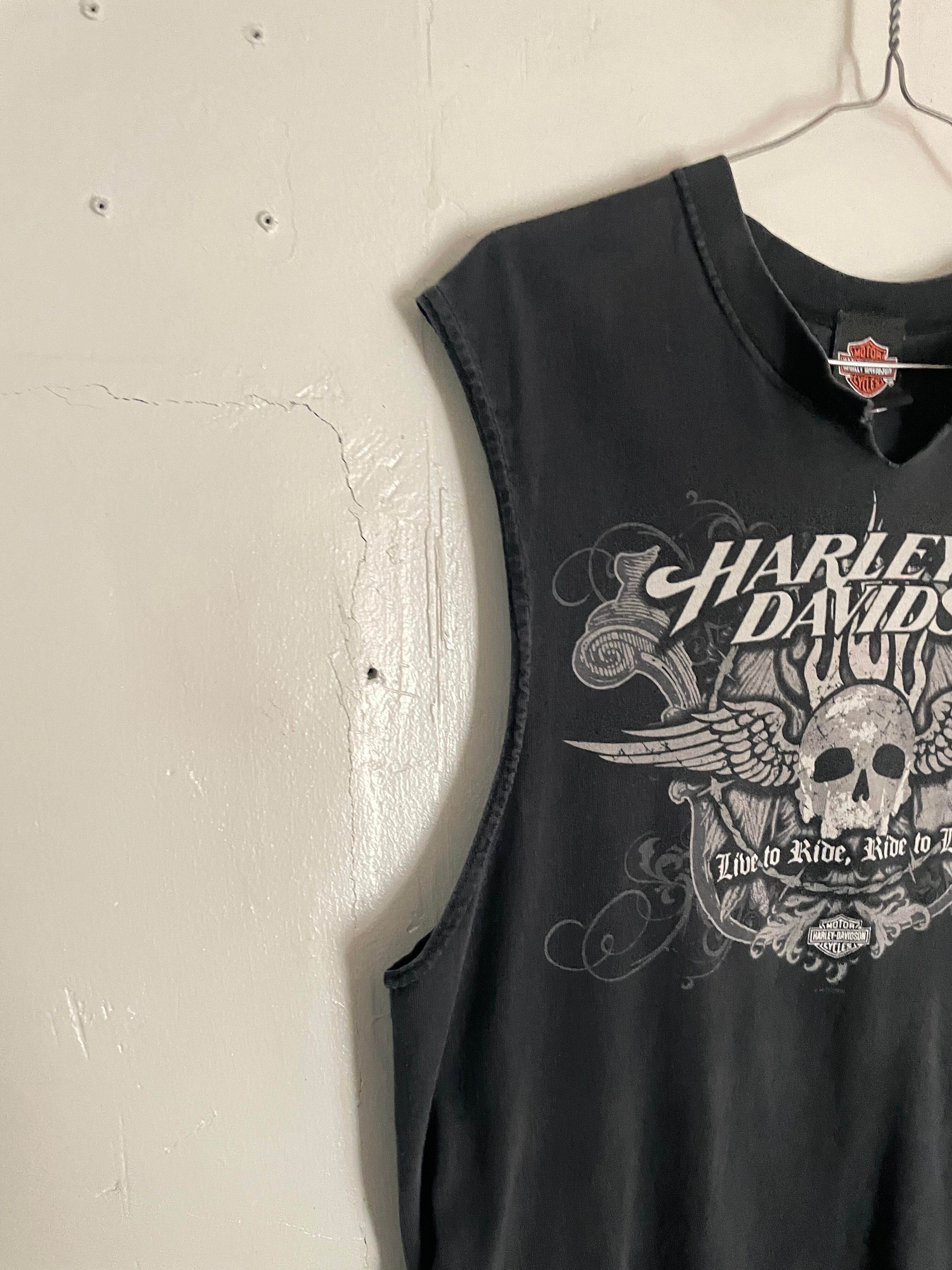 Old HARLEY-DAVIDSON Black Double Printed No Sleeve T Shirt