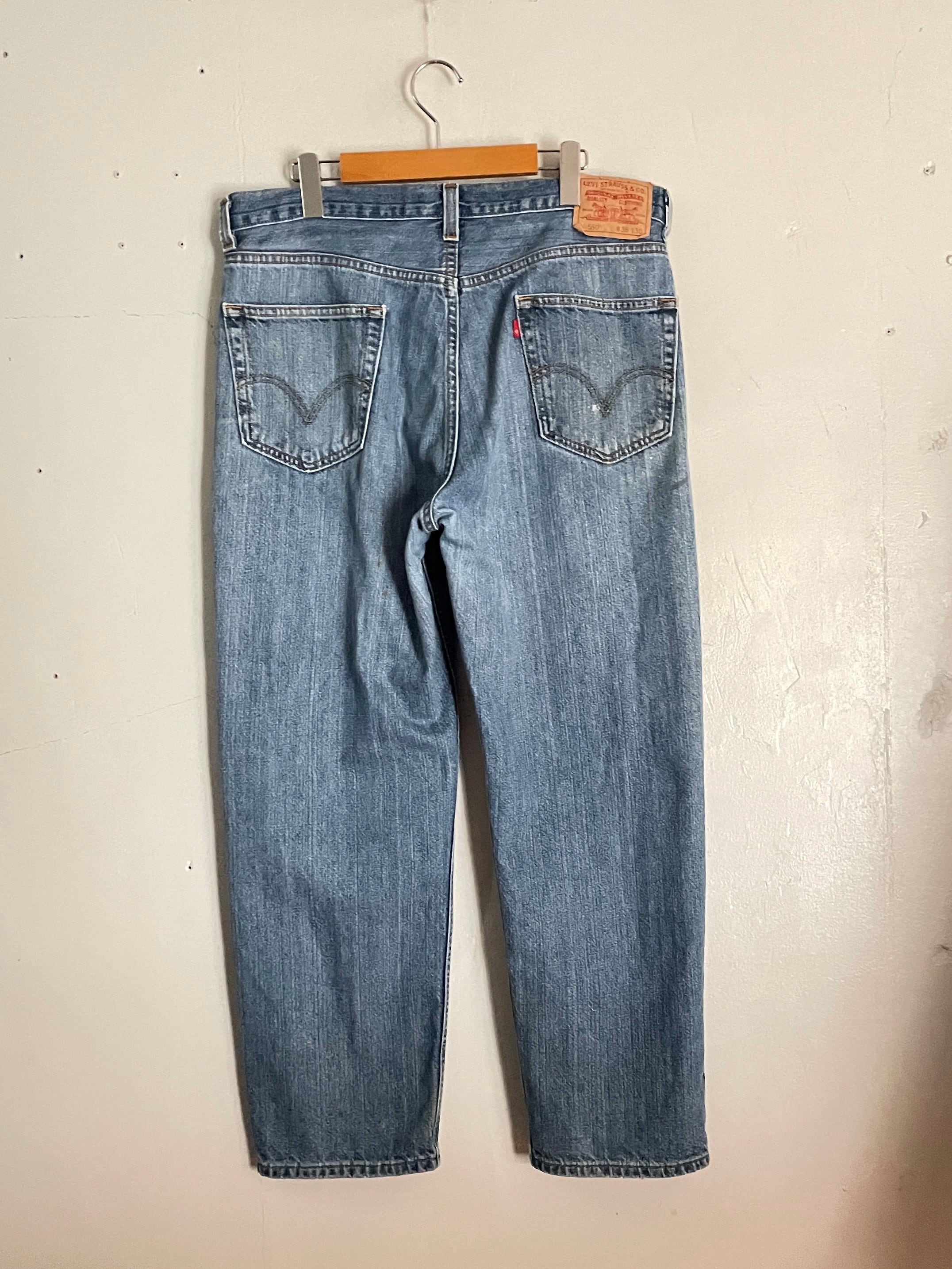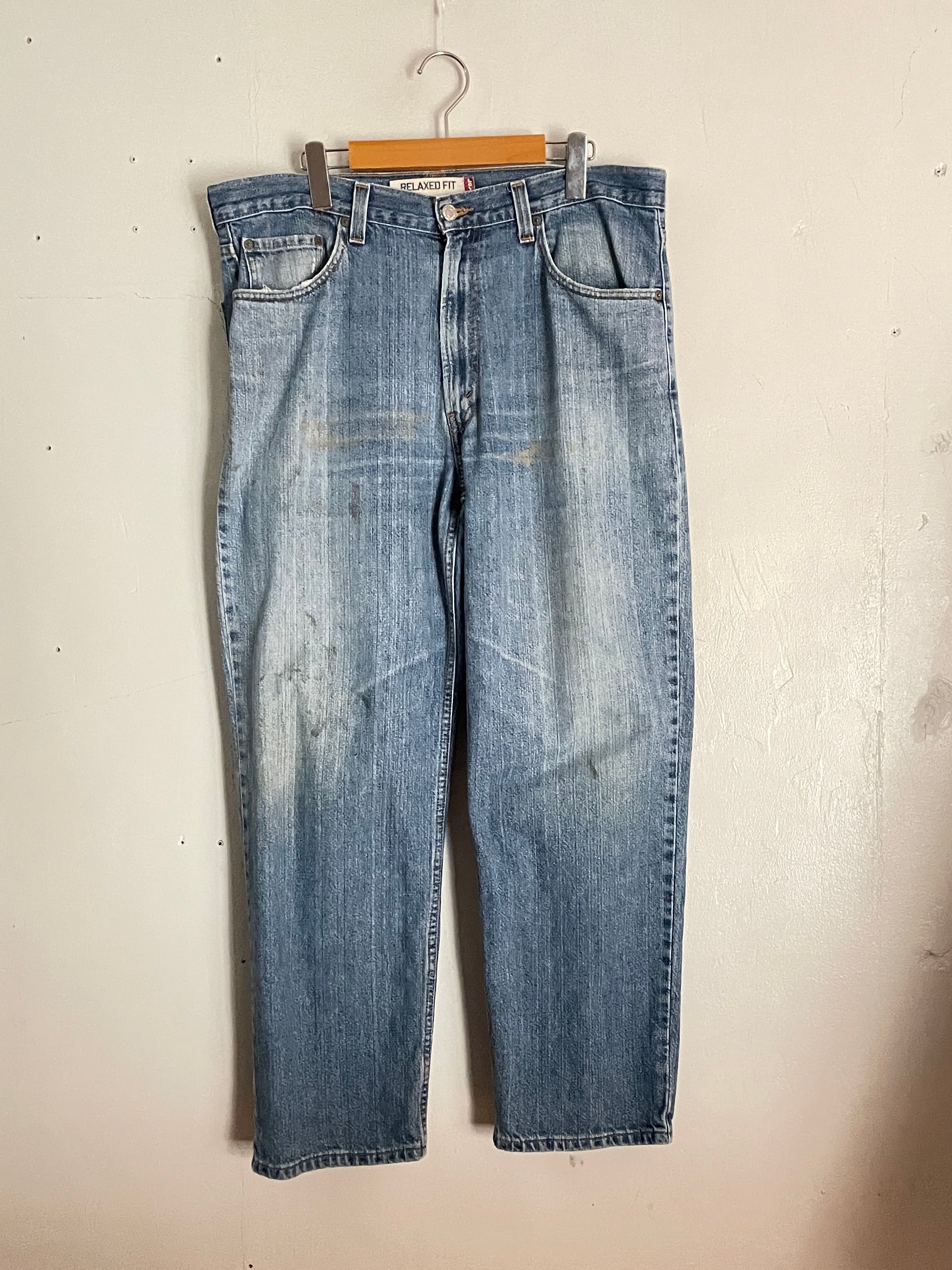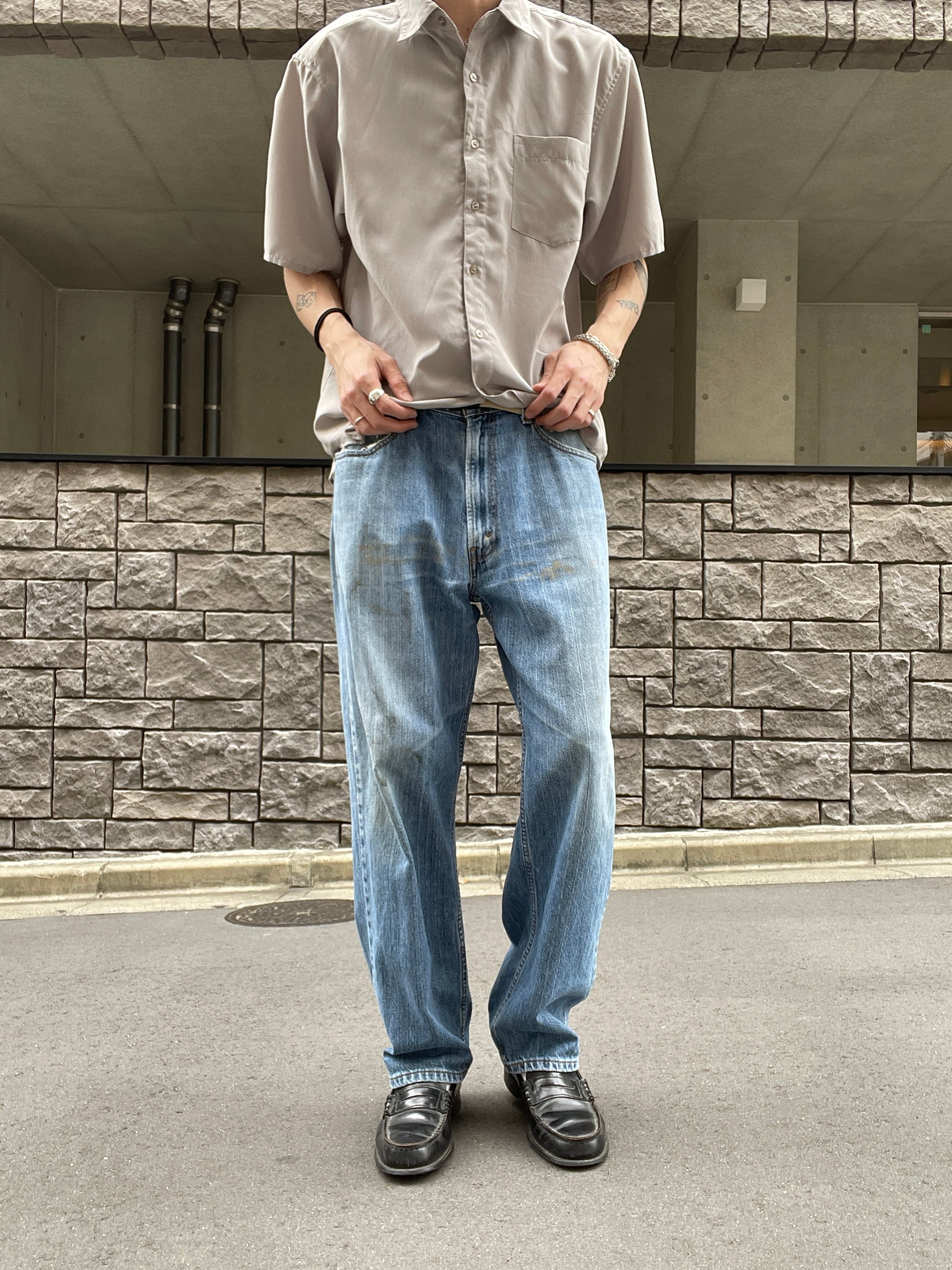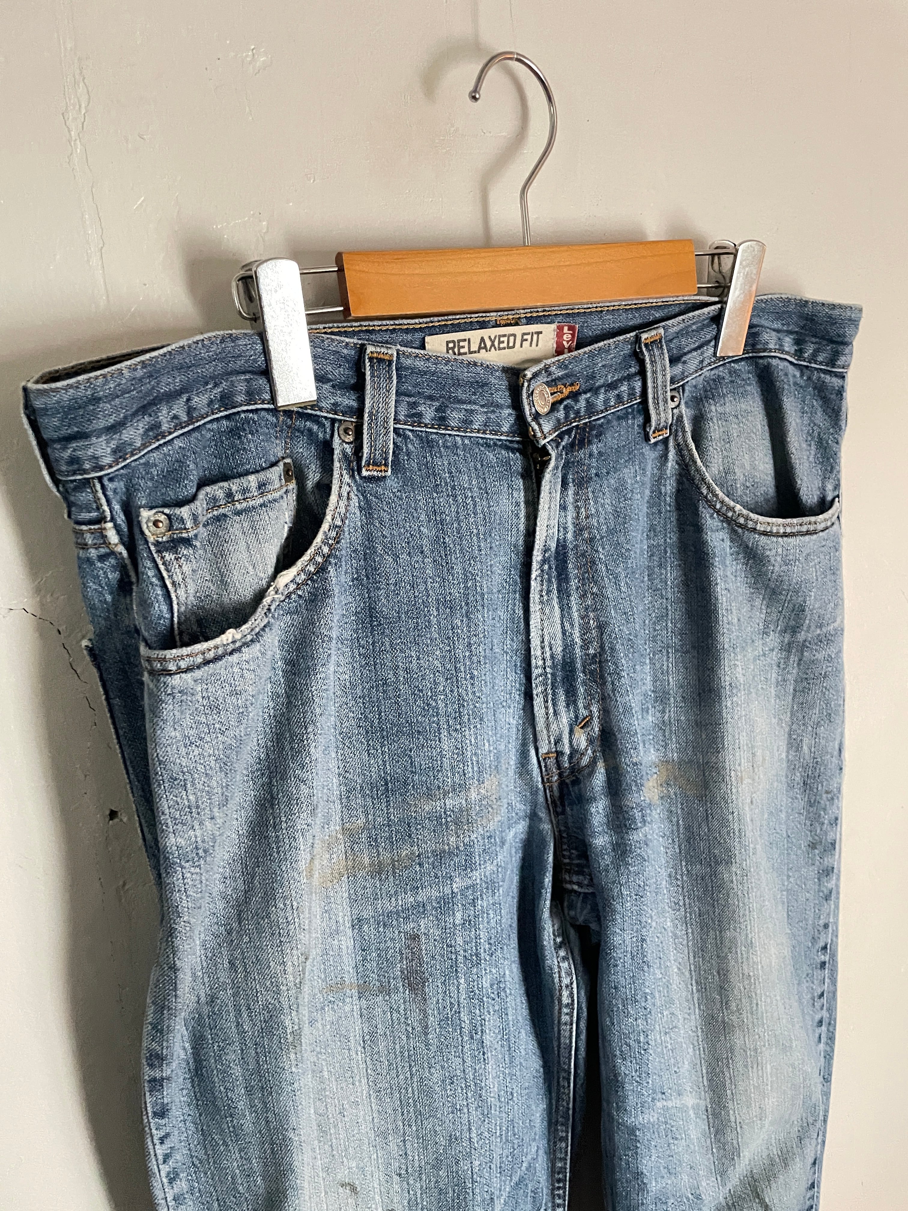 良い褪せ方をしたブルーカラーに、程良くペイントが施された、リーバイス550のデニムパンツ。ゆったりとしたテーパードシルエットが特徴で、腰回りに程よい余裕がありながら、裾にかけてすっきりと落ちるバランスの良い一本です。全体に施された自然な色落ちと、履き込まれたことで生まれた柔らかい風合いも魅力で、こなれたスタイリングにぴったりです。
