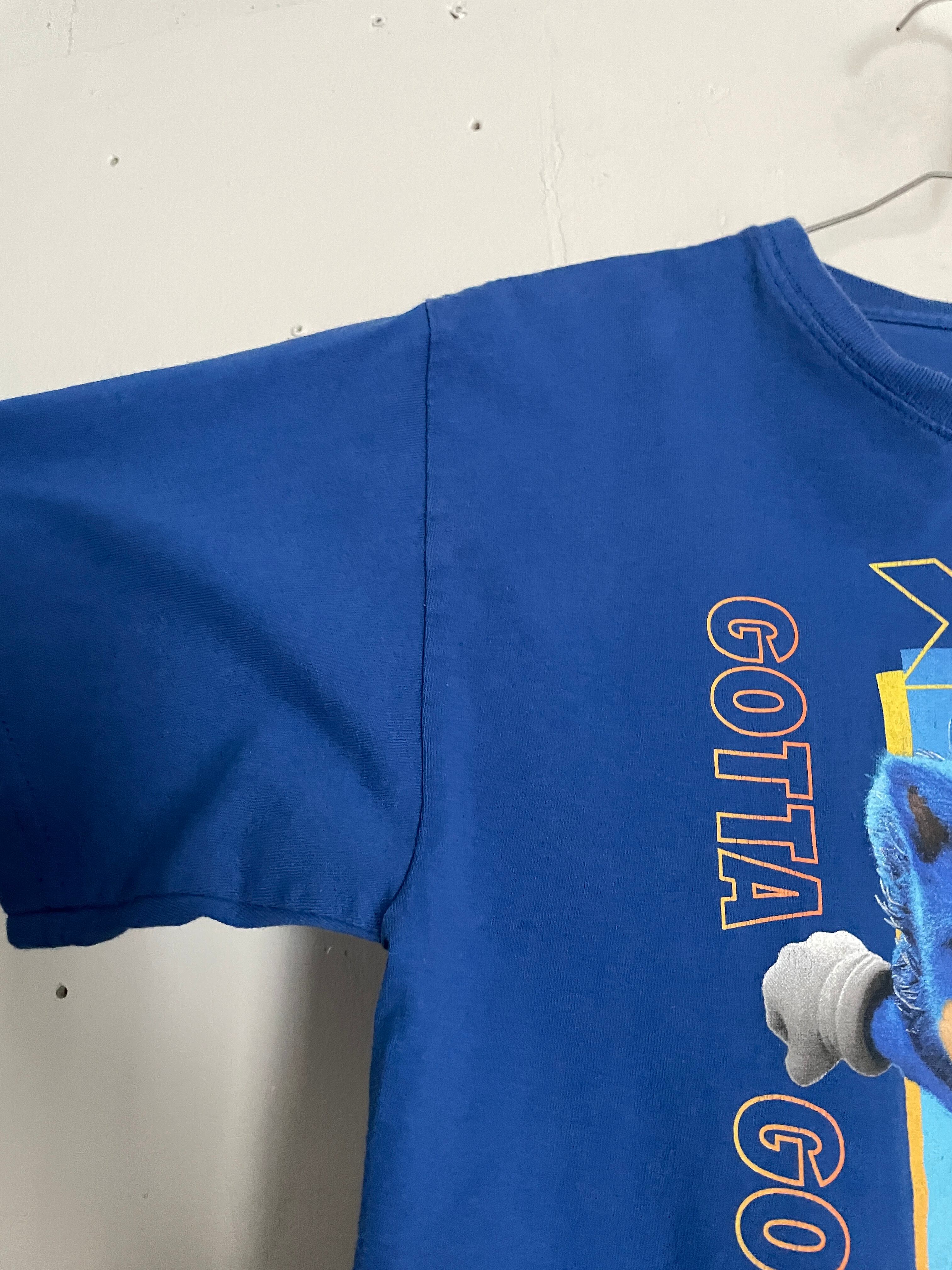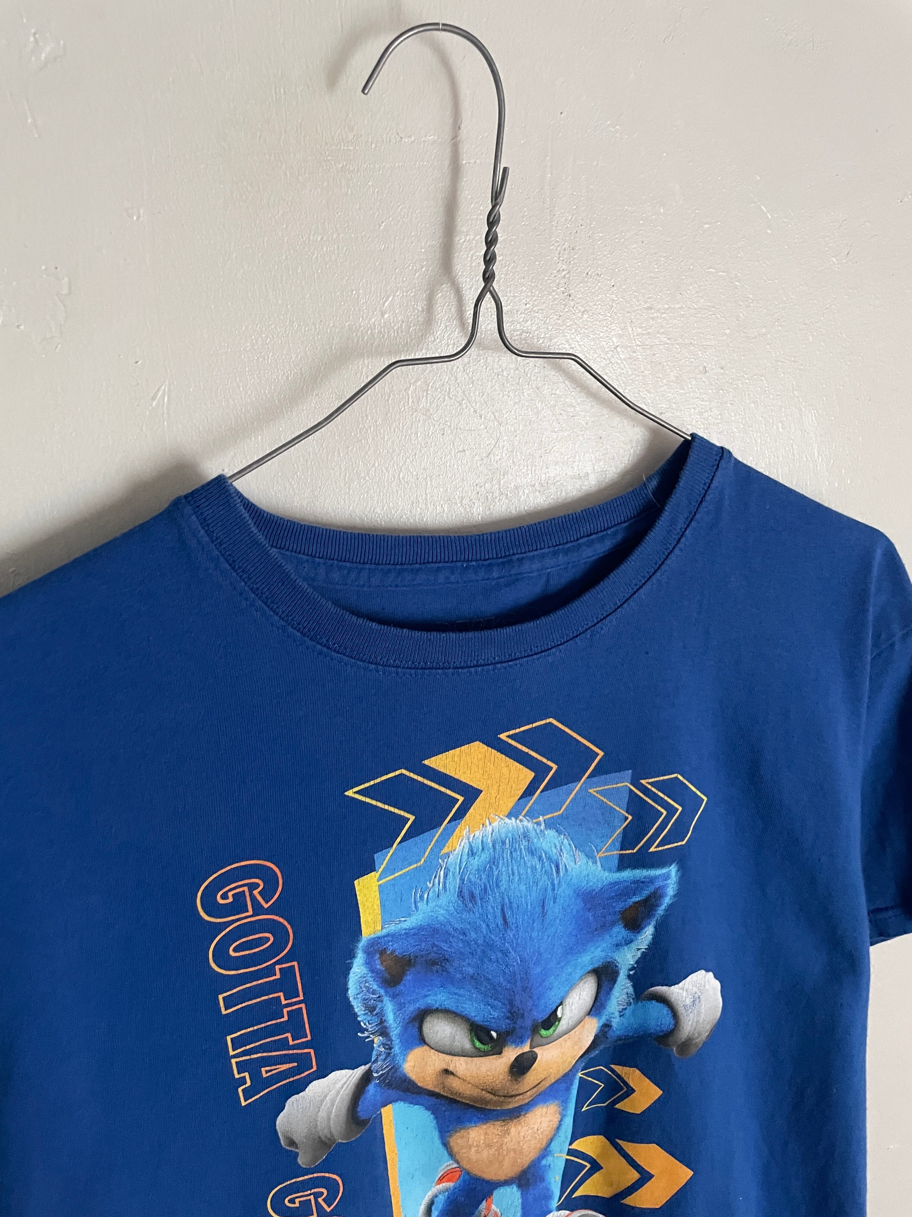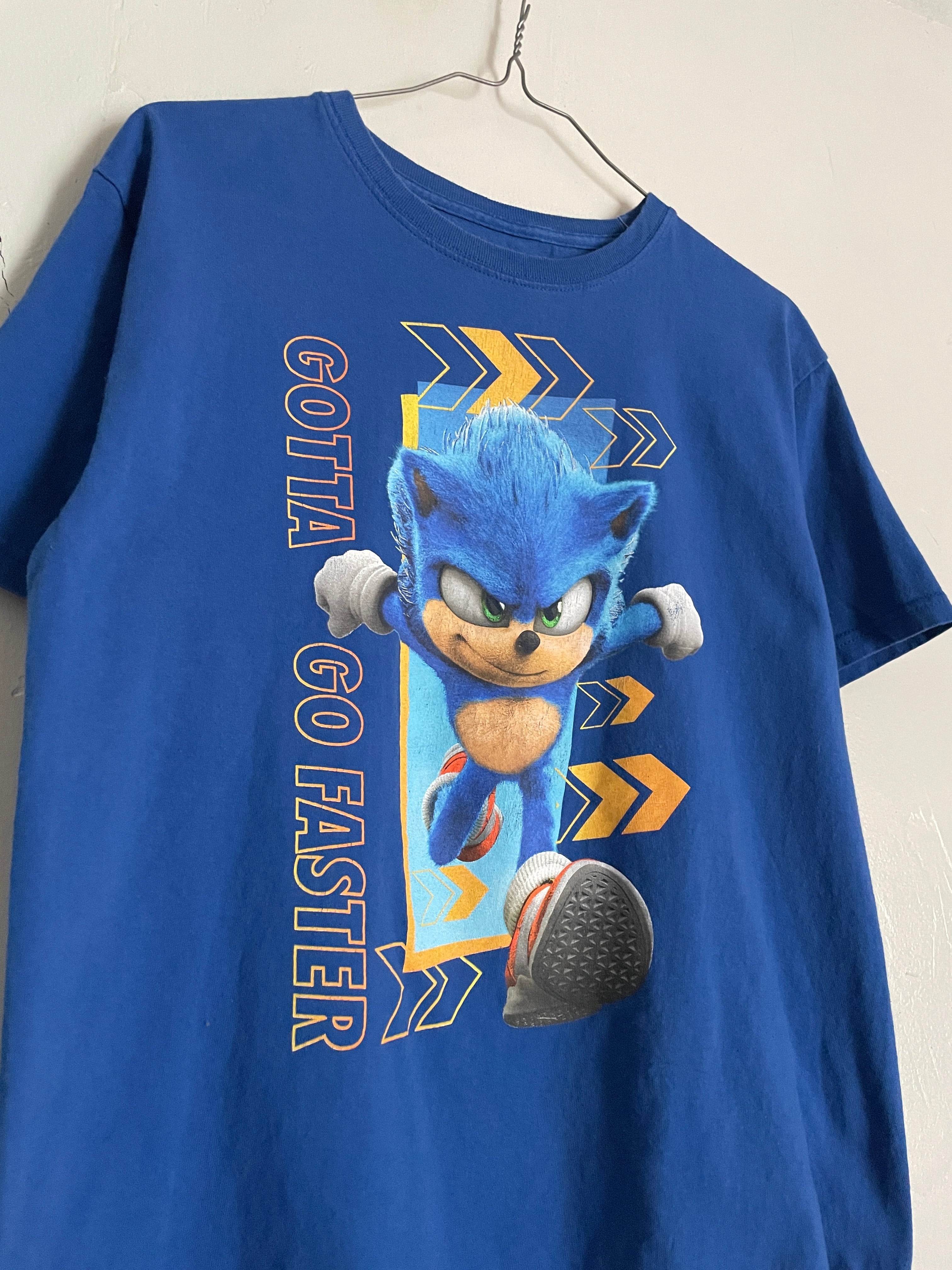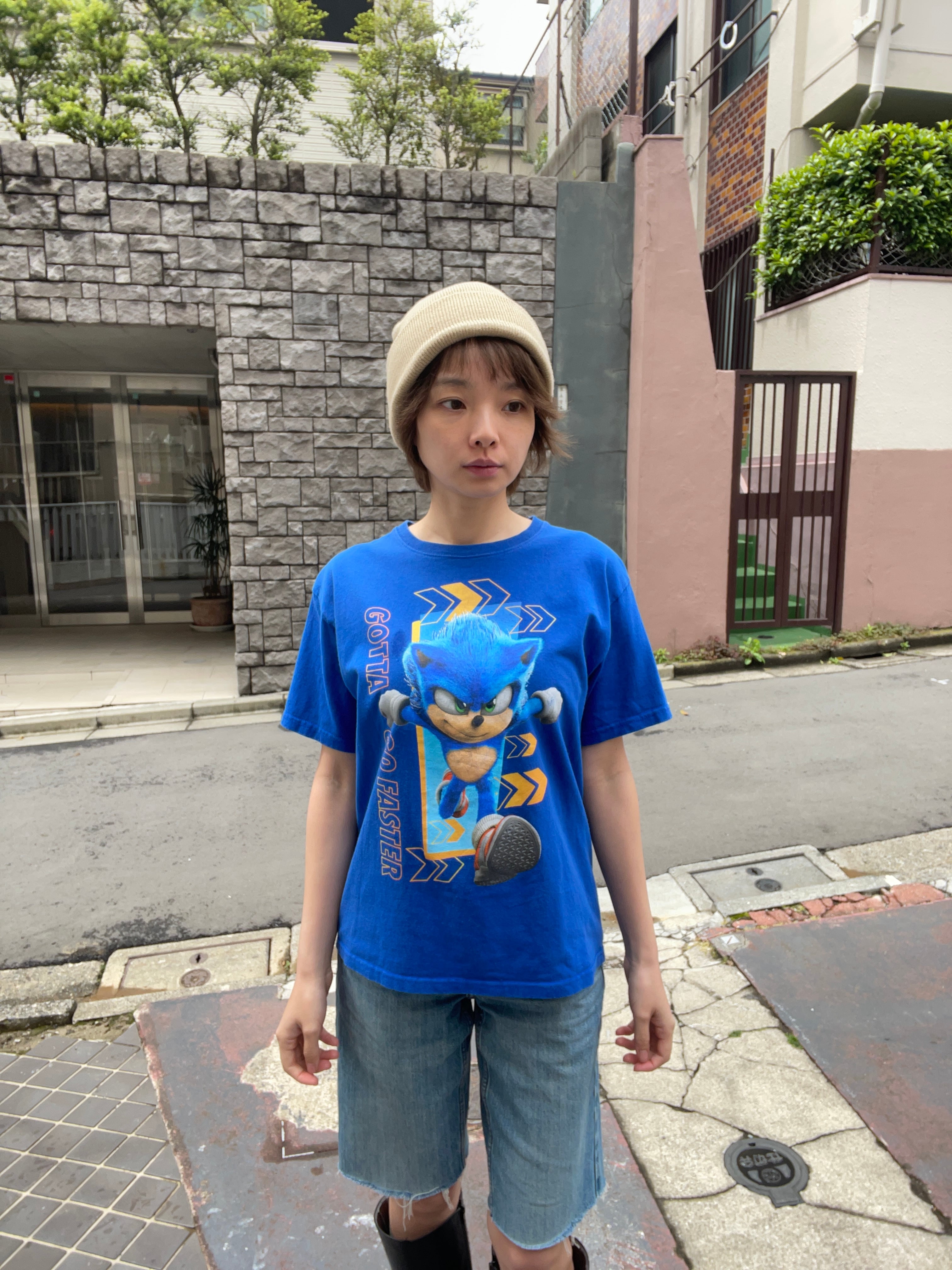 ソニックが大胆プリントされたインパクト抜群のTシャツです。鮮やかな青がとても可愛いです。ゲームT、キャラクターT需要でメンズ人気も高く、着るのはもちろんコレクションとしても楽しめるアイテムです。コピーライト2022年SEGA。