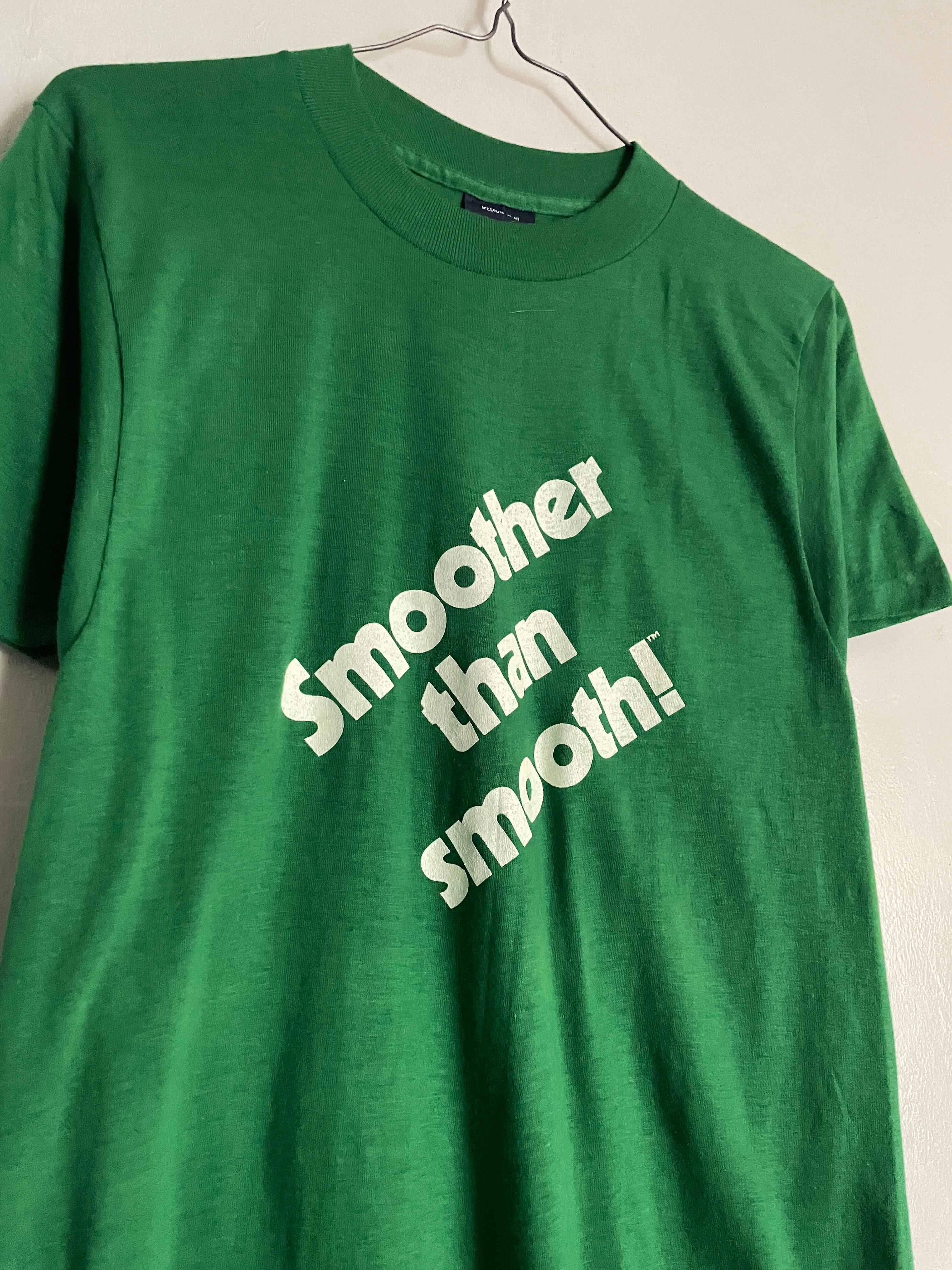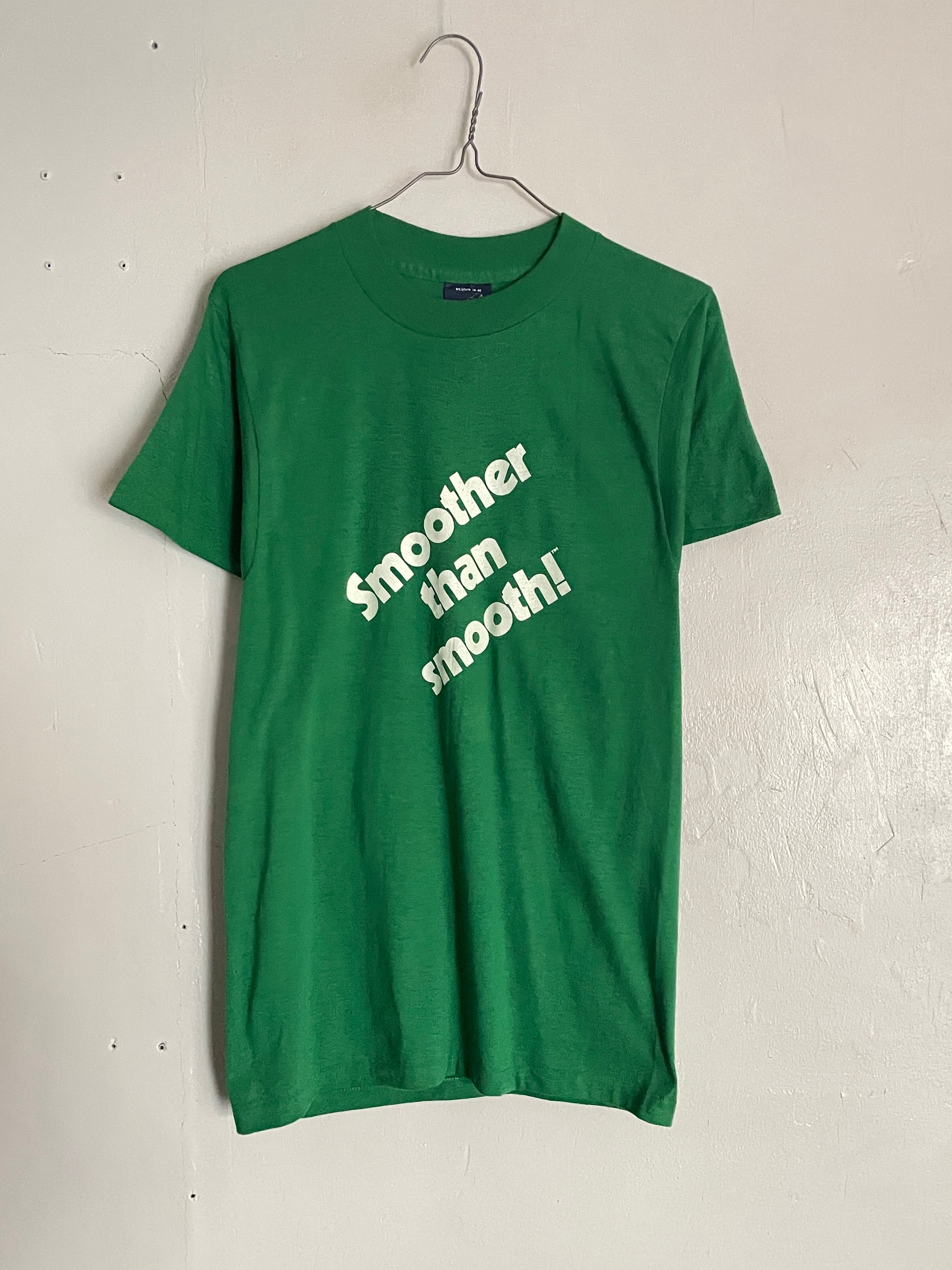 綺麗なグリーンボディに、メッセージプリントと、マウンテンデューのクラシックなロゴプリントが施されたTシャツ。前は”驚くほど滑らか!”といったキャッチコピーが斜めにプリントされています。バックには長方型の枠の中に、特徴的な書体でマウンテンデューのプリントロゴ。前後でどういった関連があるかは不明ですが、それがまた面白いです。ポリとコットンの柔らかく軽い質感。タイトめな縦長シルエット。夏には一枚で着たいTシャツです。しっかりとUSA製なのもポイントが高いです。